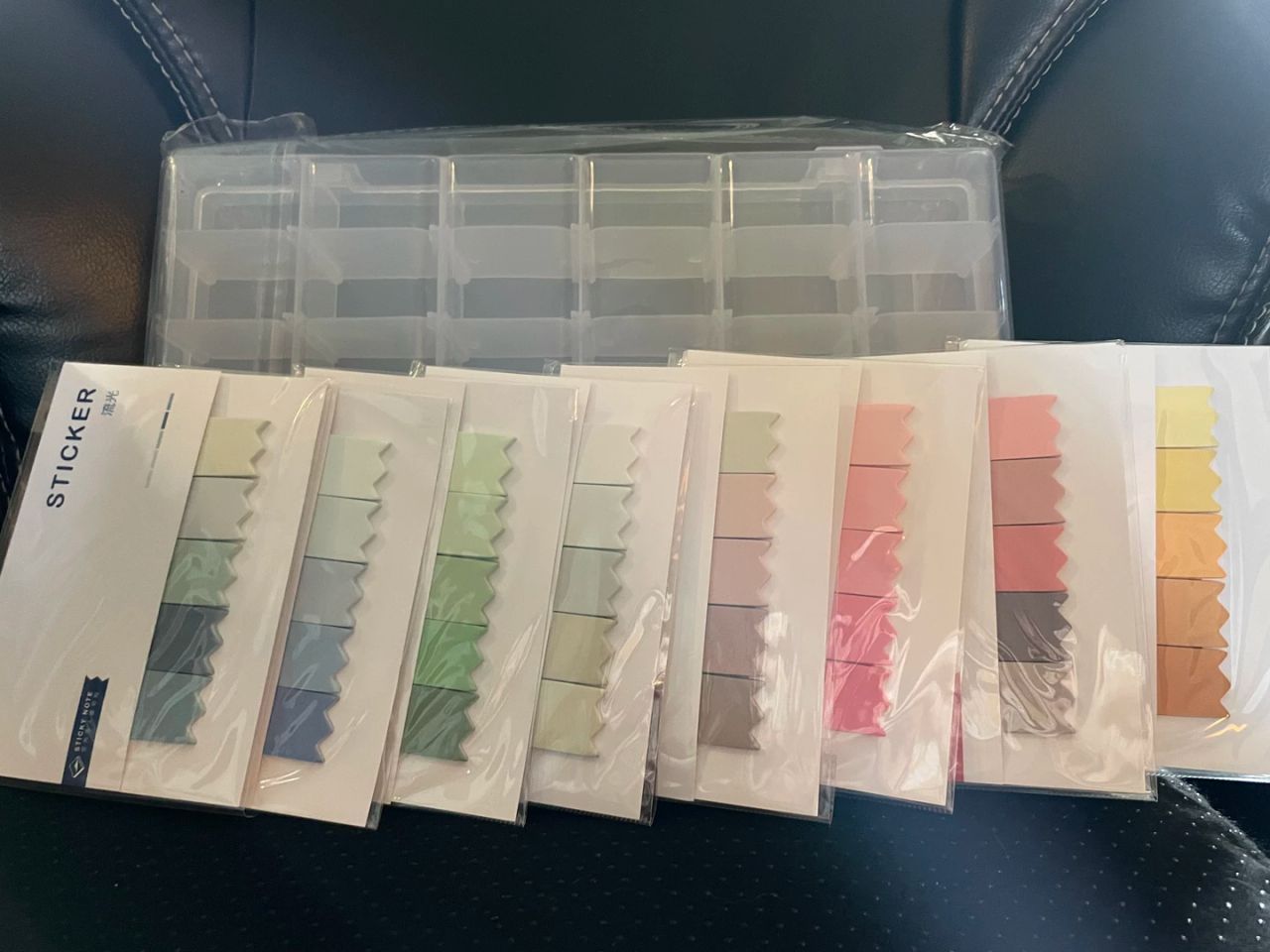 I also got a huge set of sticky markers that I can color coordinate with my projects, and a clear plastic divider for the kids and I to organize our rock collection! (Perfect timing; they're getting a Declan's Bucket of rocks for Easter!)