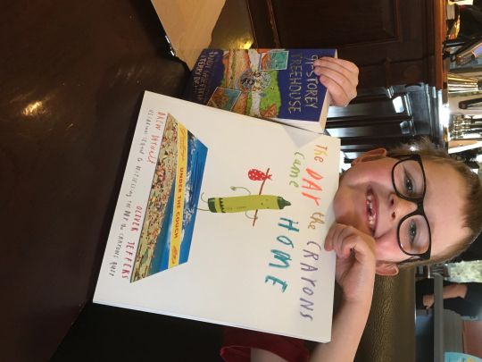I think we have a new gifter on our hands as he enjoyed picking out the books to send to his giftee as well
