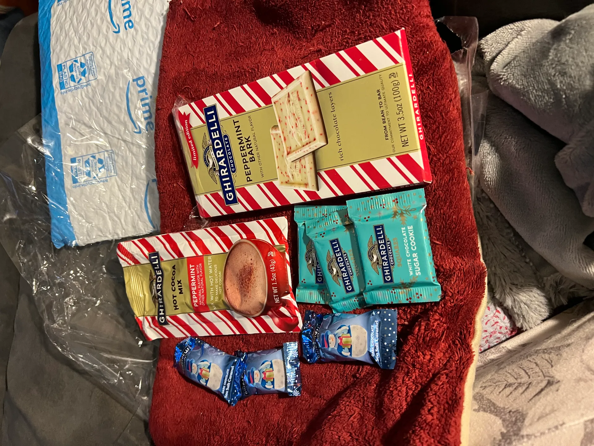 Thank you for the sweet Ghirardelli stocking! I’ve finally tried peppermint bark and it’s so good! I loved it and barely remembered to snap some pics before tearing them open. Yum!