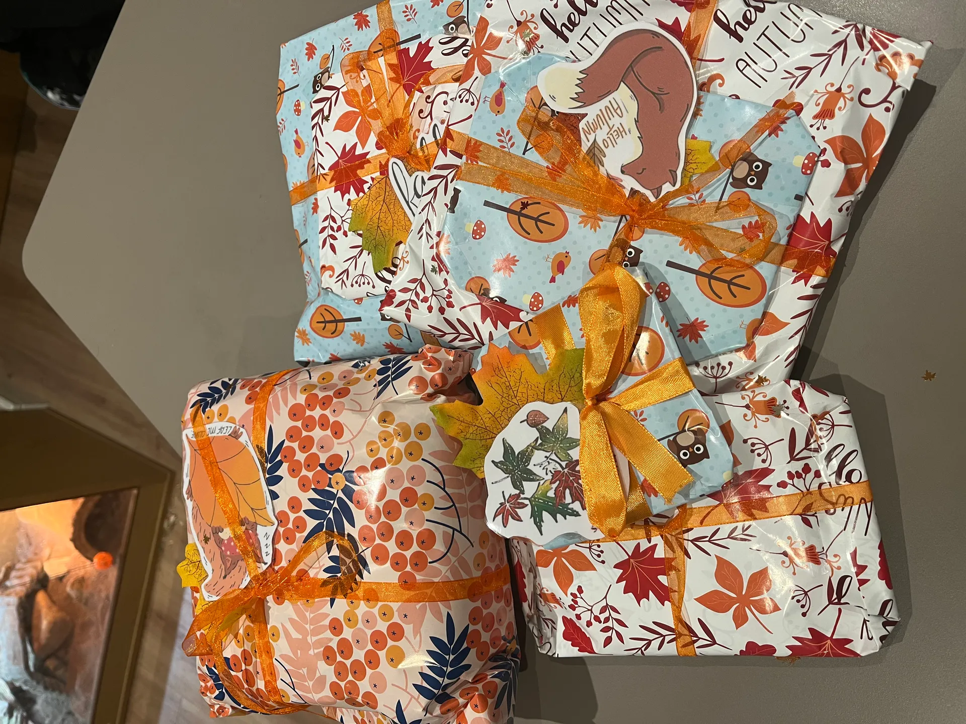The only thing I can say about this gift is it was beautiful. It gave me all the warm fuzzy fall feelings. And yes I will be finding that maple leaf confetti everywhere for the rest of time ?