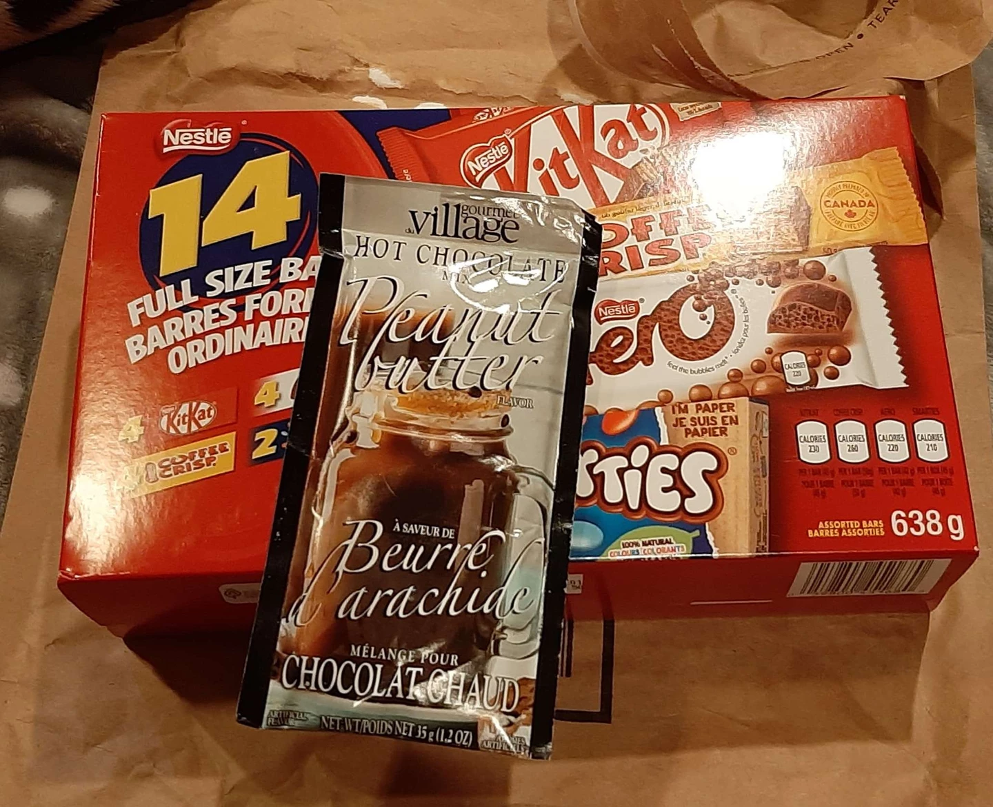 Thank you so much for the quick delivery of sweet treats! I can wait to dig into some tried and true faves, and I've already emptied out the two packs of smarties to mix with our existing candy jar of them as it's pretty popular in our kitchen snack area. Also I'm really curious about this peanut butter hot chocolate but it was a tiny bit warm today so I'm going to wait and see tonight, maybe savor it with a good read :D