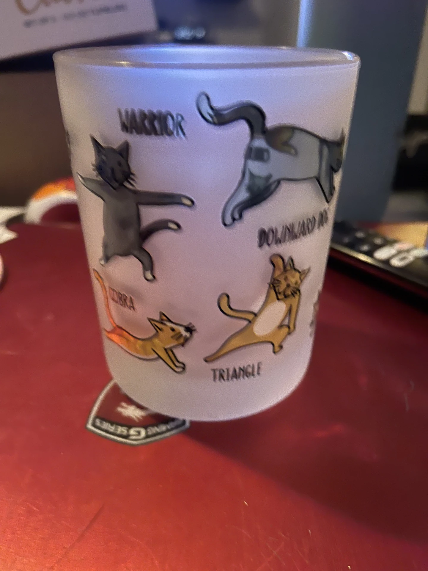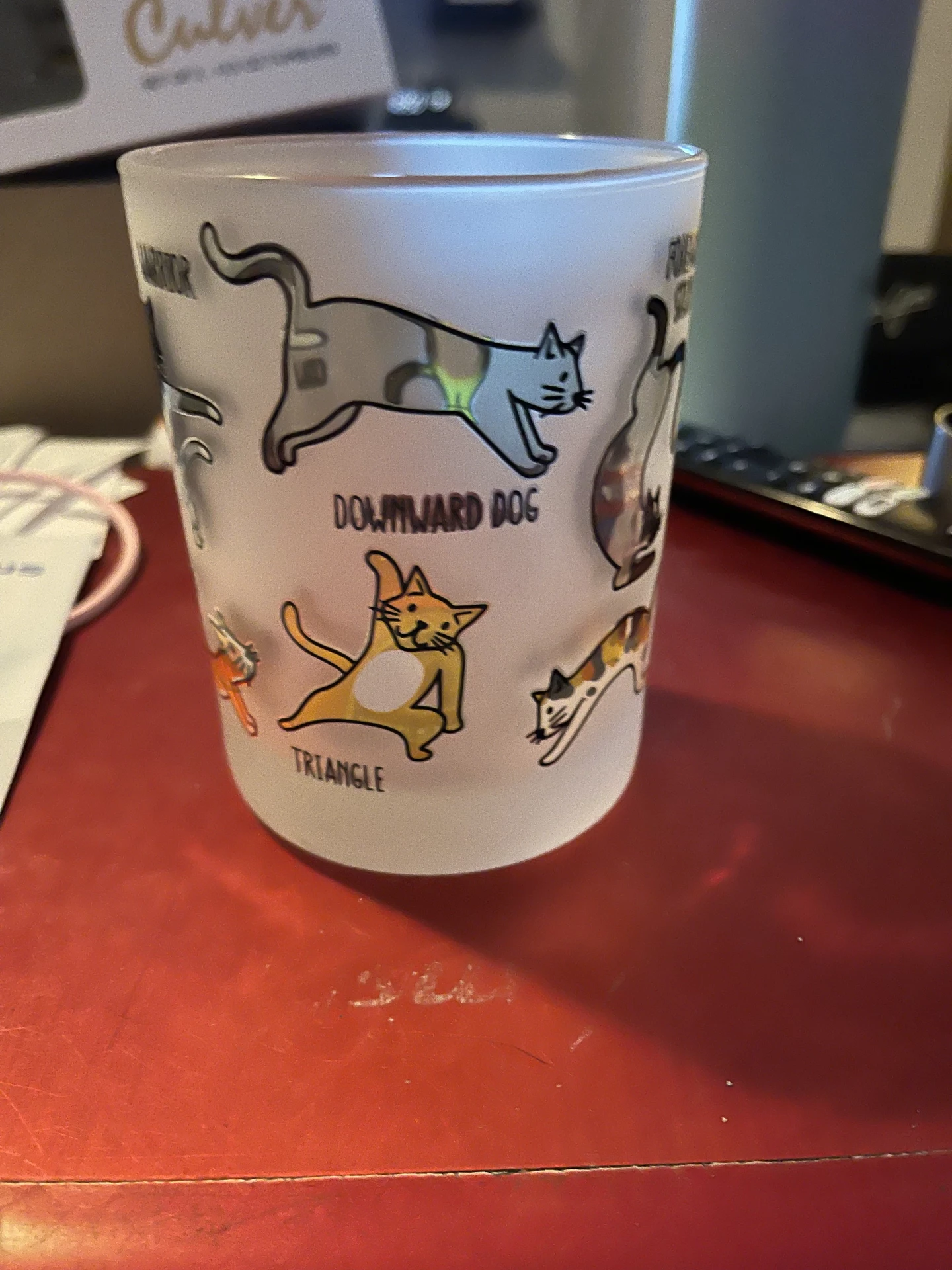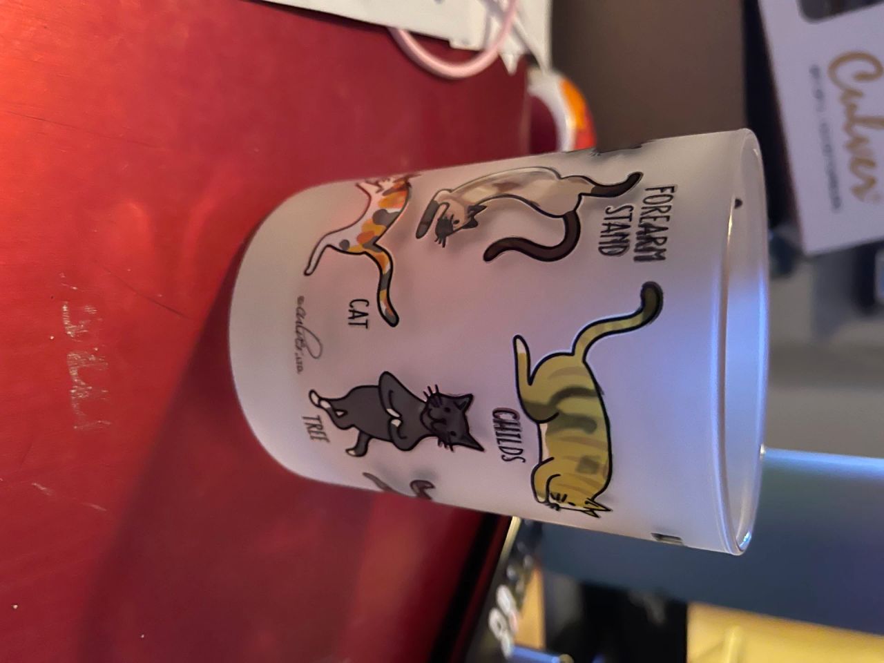 I received my gift today and found two glasses that have yoga cats all over them. So CUTE, unexpected and it’s as if my gifter lives with me. The second gift are these two really cute bike holders for the wall. These are much needed because I have too many bikes (said no one ever) and these will help get my floor space back.