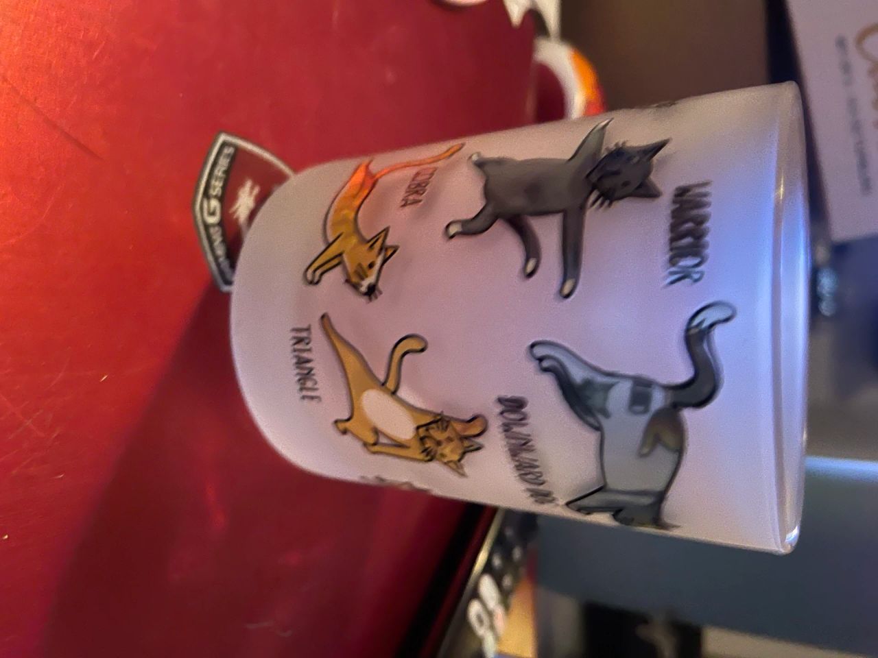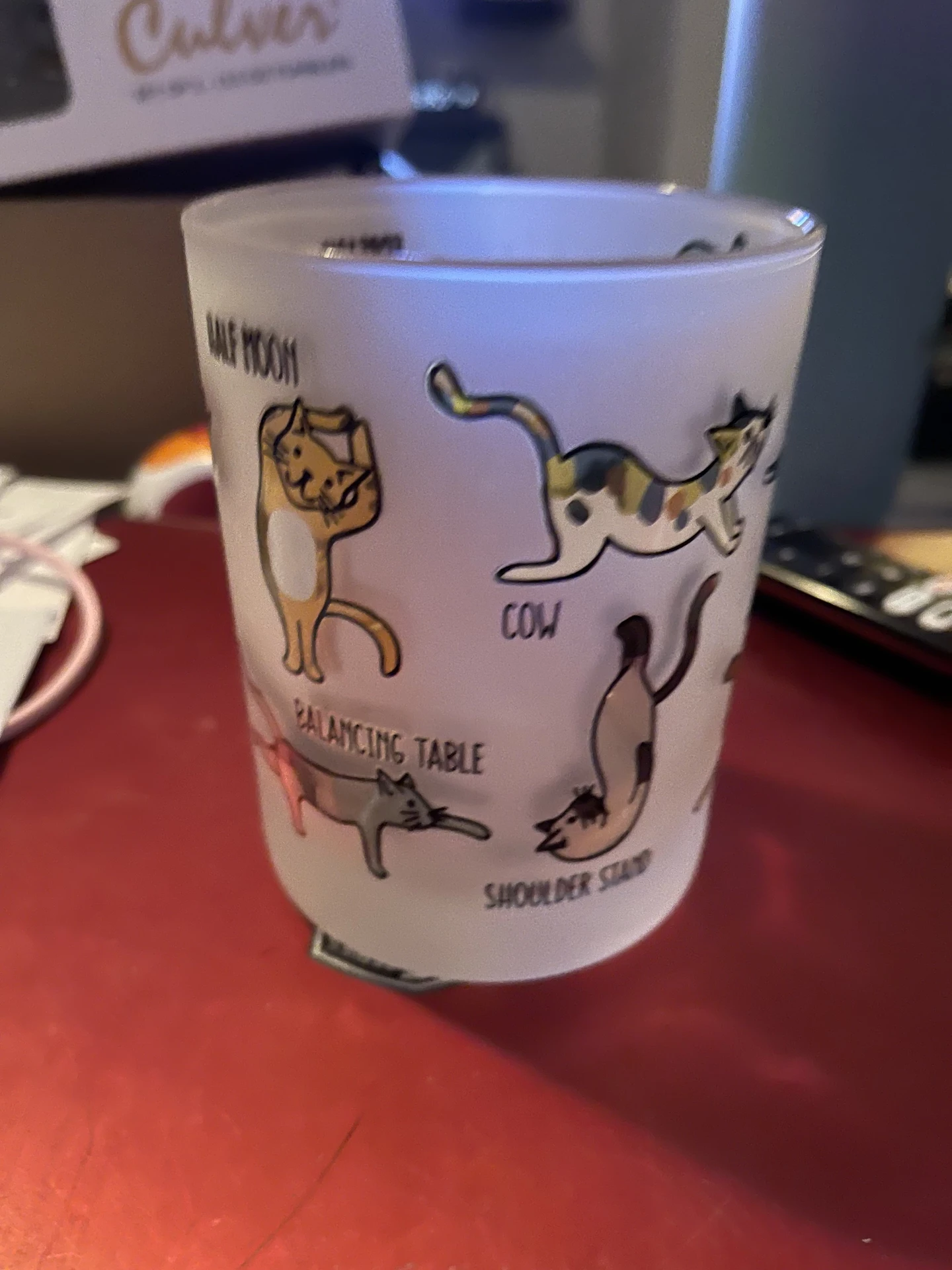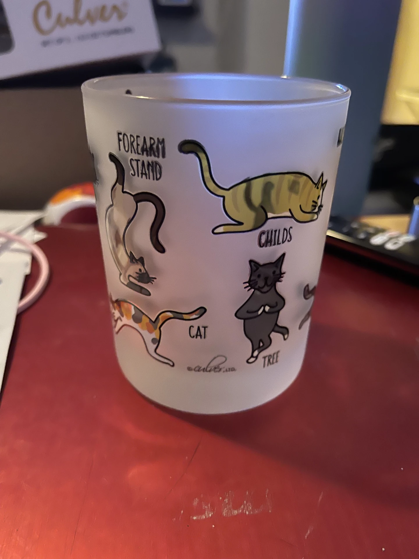 I received my gift today and found two glasses that have yoga cats all over them. So CUTE, unexpected and it’s as if my gifter lives with me. The second gift are these two really cute bike holders for the wall. These are much needed because I have too many bikes (said no one ever) and these will help get my floor space back.