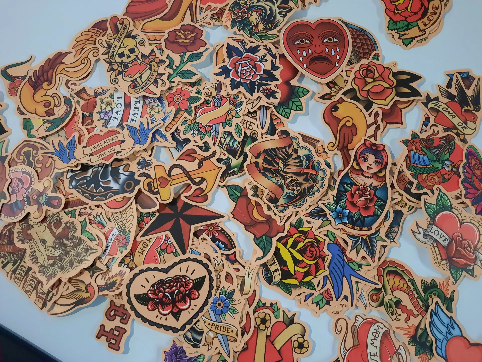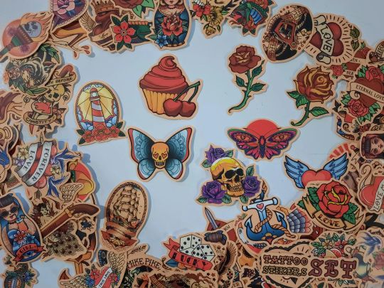 100 pack of retro vintage tattoo stickers
