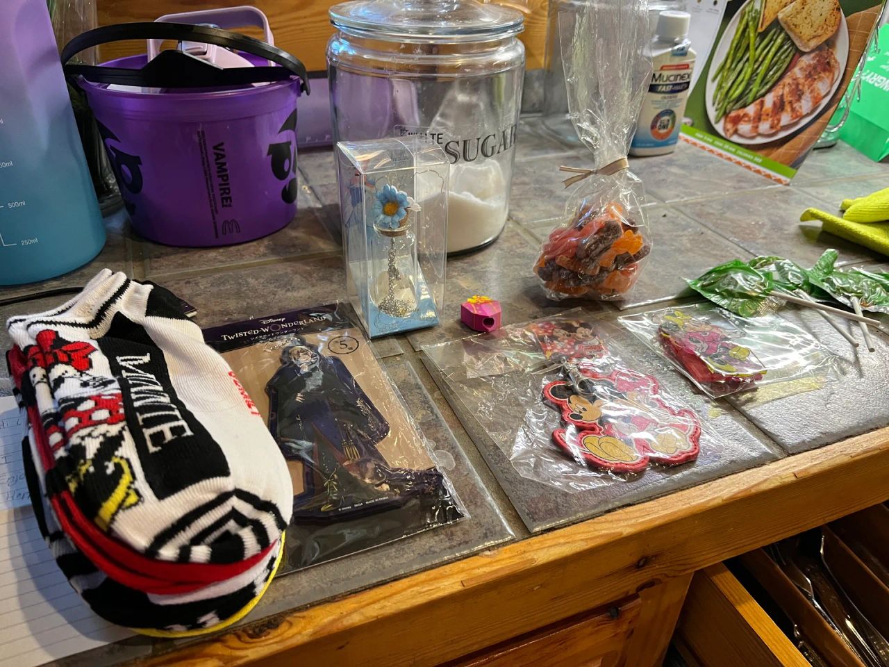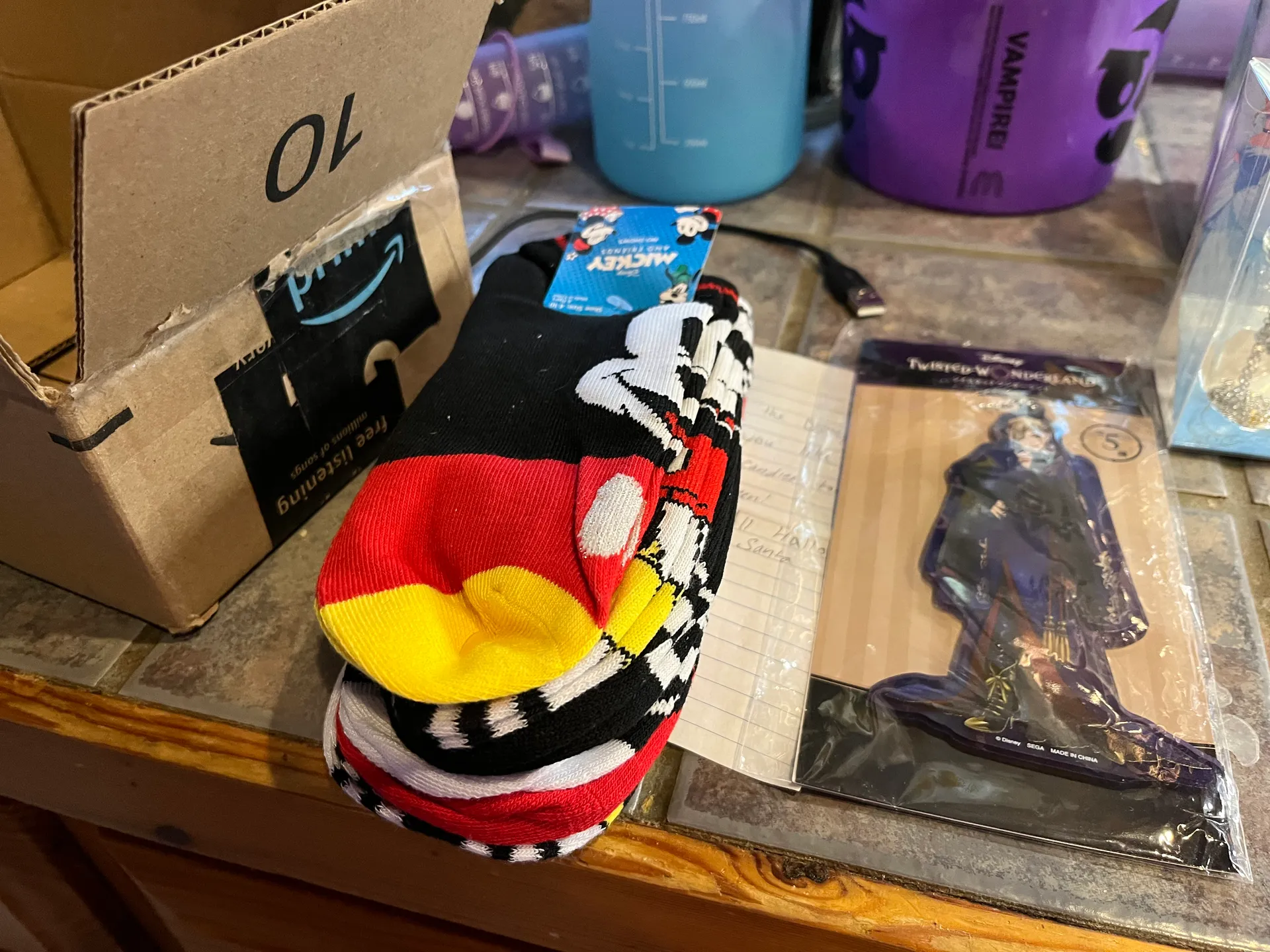 I am a little behind on posting this but I wanted to thank my Santa for the Disney themed goodies. They will be an asset to my Disney collection. I live in the mountains and the socks will be utilized this winter. Thank you again.