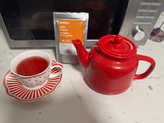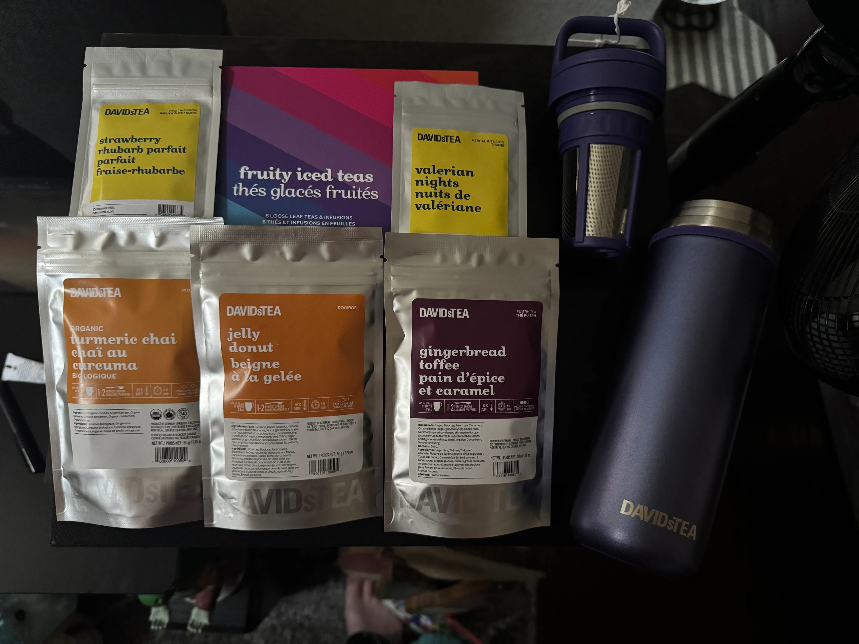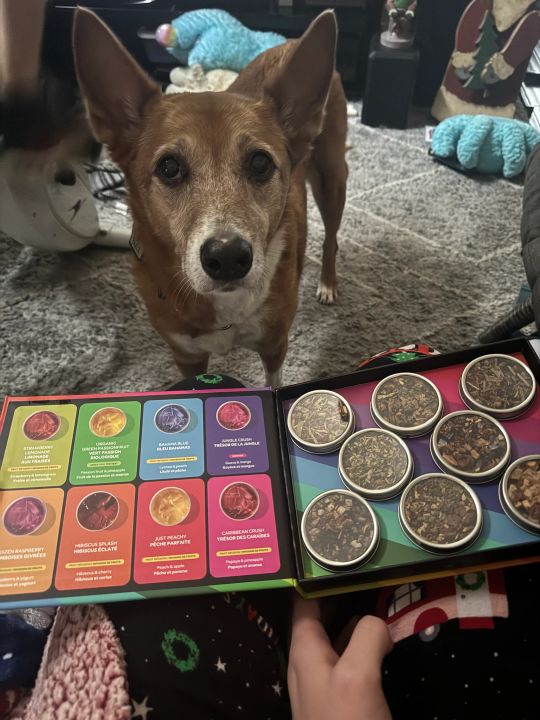 I really appreciate being rematched at all, and was NOT expecting all of this. These teas are like nothing I’ve ever tried before and all sound amazing. Special shout out to the donut one as I am obsessed with donuts. So creative. The fruit teas are all so unique. My dog is very interested ? I also am so so SO excited about the travel thermos… and then I opened it up and realized it HAS A STRAINER. I have nothing like this and totally sealed the deal. I will be taking this to work every day ??? I was starting to lose faith in giving gifts after several people not sending things and me going all out. This has really helped restore my faith a bit. Thank you again!