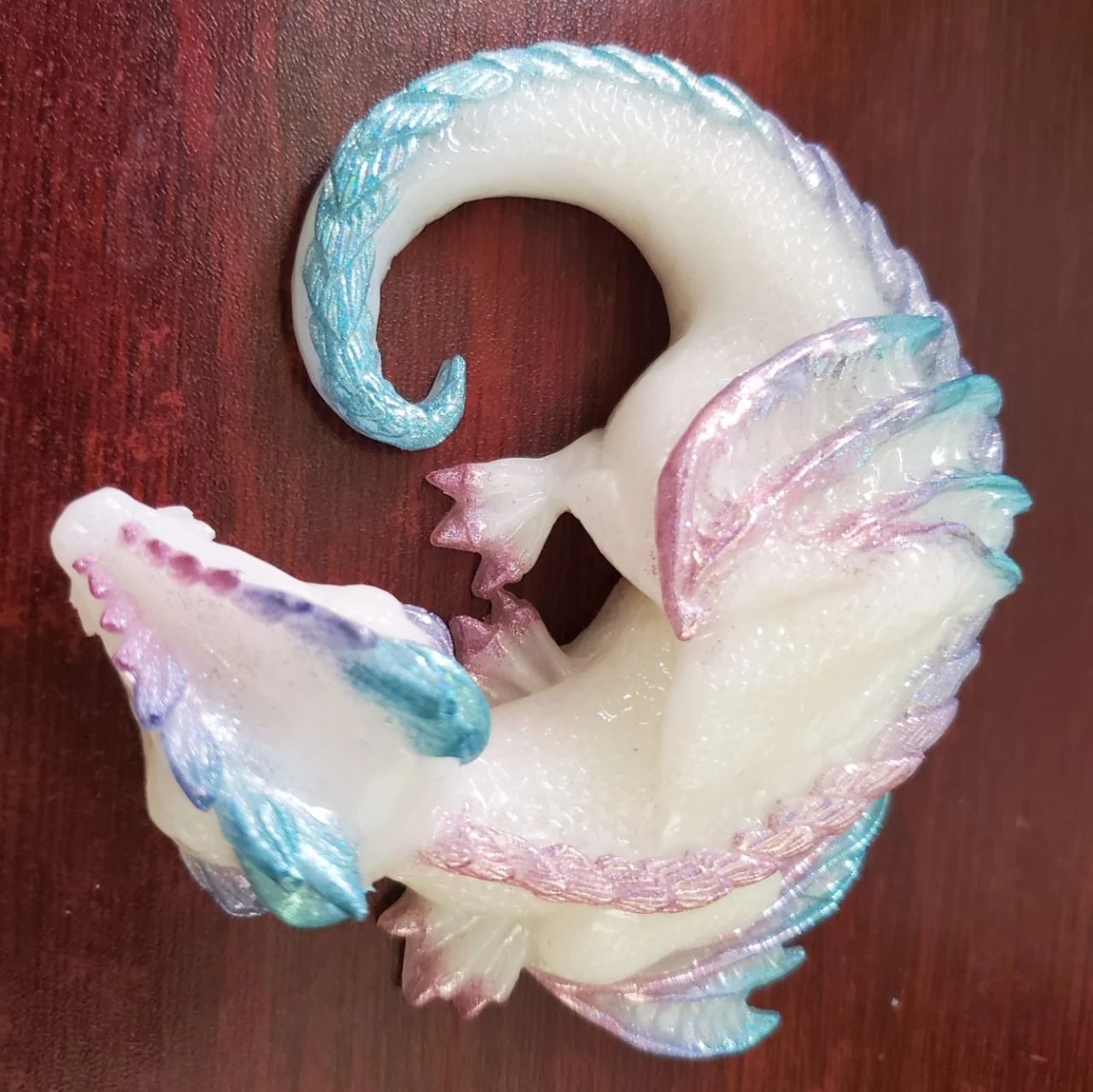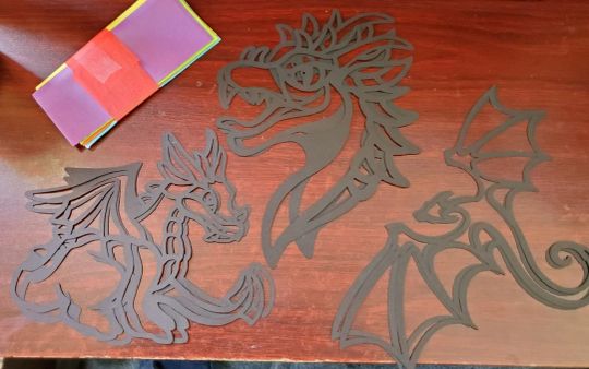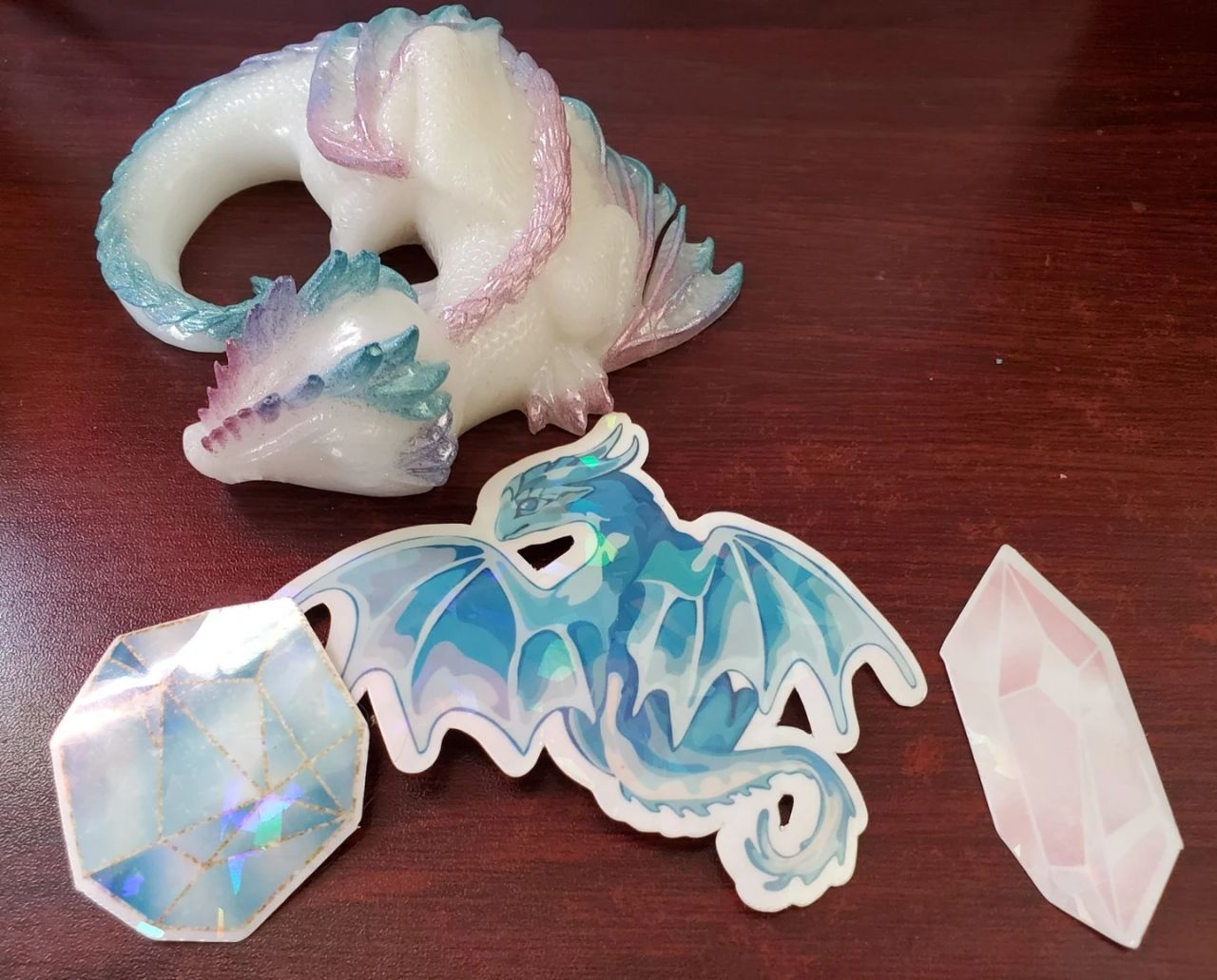 I got two lovely gifts from my Fantasy gifter. First I received a kit to make some dragon sun catchers. There are two each of three different outlines and a bundle of tissue paper to fill them in. This will be a fun activity to do with my kids and I'm sure it will result in some very interesting dragons. I also got this adorable little resin dragon that came with some bonus stickers that will most likely end up on my kids' toy box. The dragon is just so cute! I love it!
