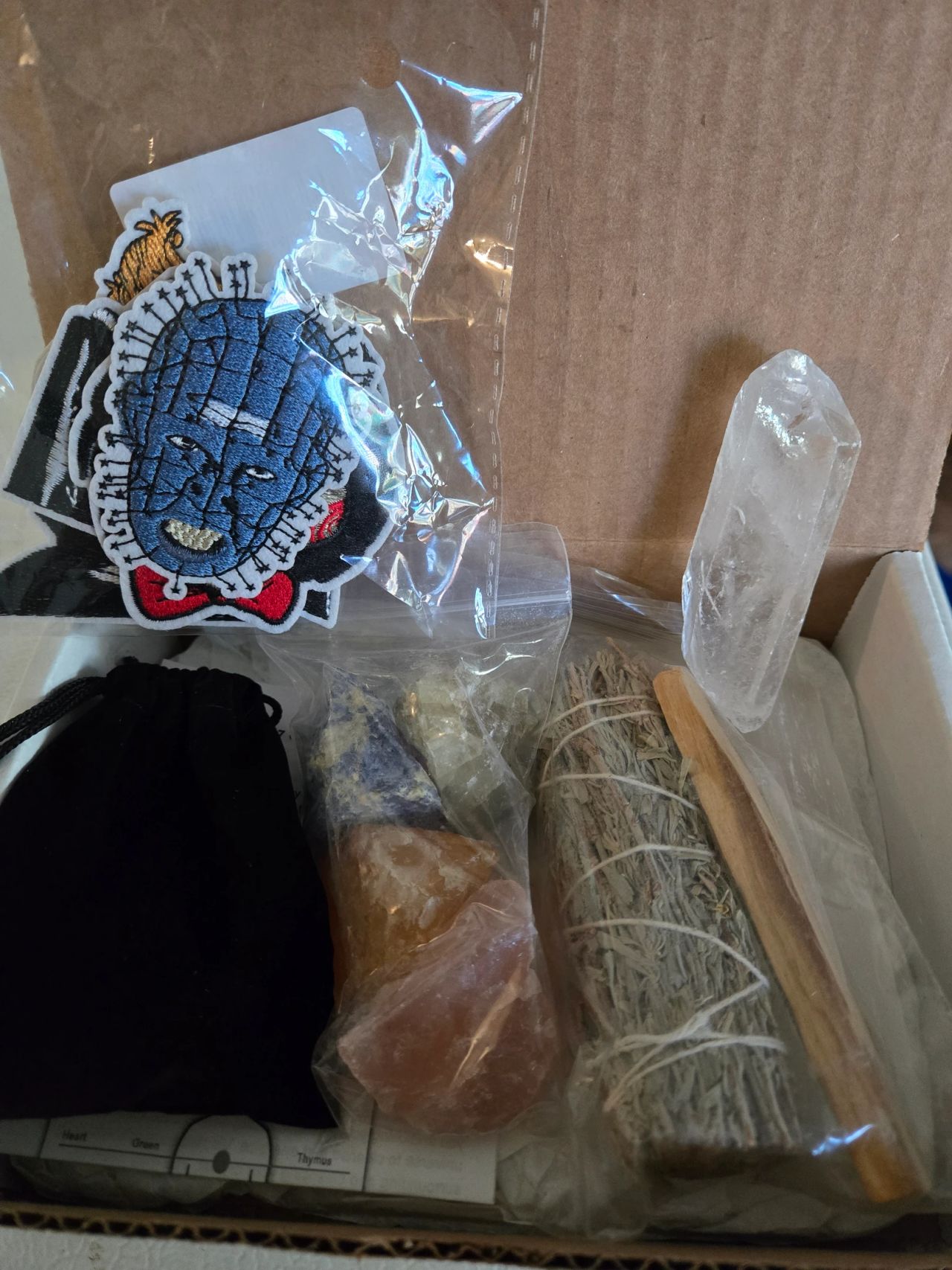 Thank you for the awesome horror themed patches for daughter's and husbands battle jackets. They are going to absolutely love them. Also I love the crystal healing and cleansing kit, it is not something my daughter nor myself has tried before so look forward to learning about it. Thank you so much! The gifts are so thoughtful!