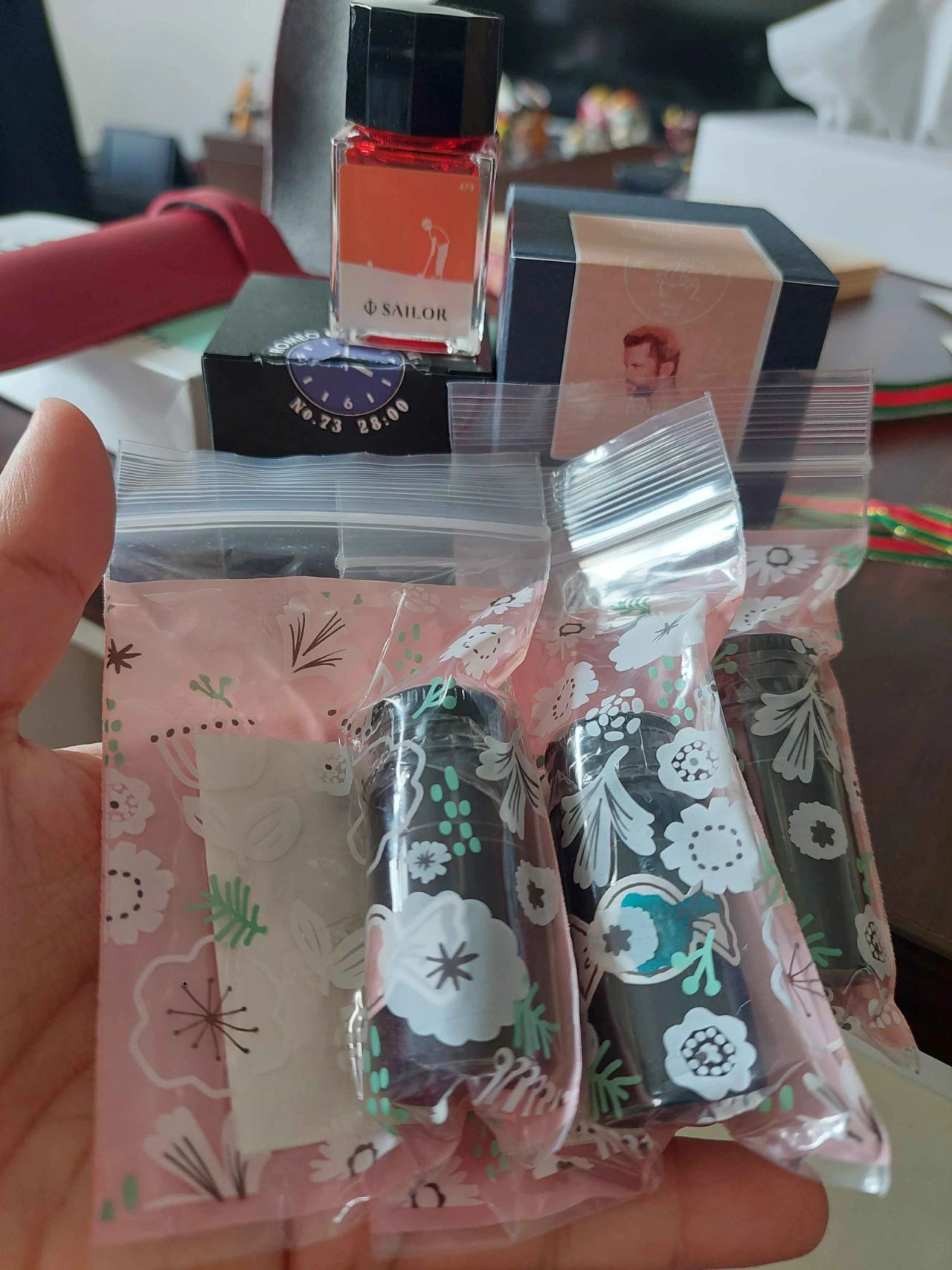 My Santa really went above and beyond for my gift, thank you so much!!! Loved everything, the pens are gorgeous but also OMG the stickers! Really liked the handwritten letter too and all the inks (orange ink?? amazing!). Really glad I participated again this year, thank you once again!