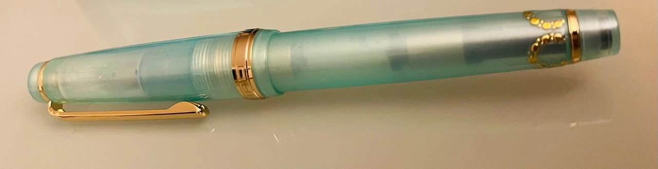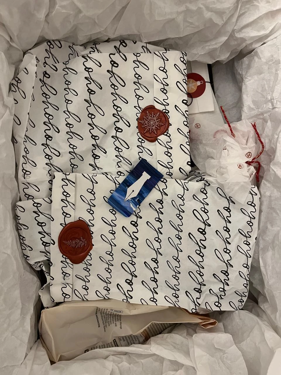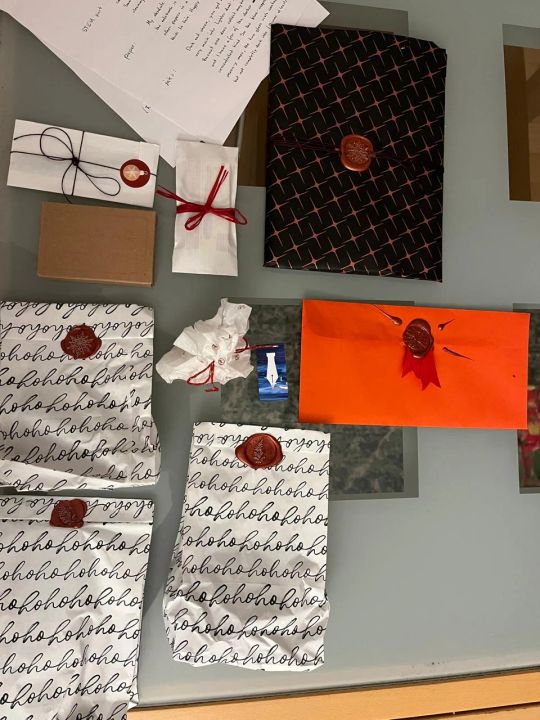 I am extremely thankful to my secret santa, the details, care and thought that went into this box, make it really outsanding. I got things I had no idea I needed: cannulas and syringes which are now my cleaning and filling kit. A detailed kaweco ornament. An orange tube holder and last but definitely not least, a pimped jinhao 82, a shark pen, ink samples and a really cool paper assortment to try them out.