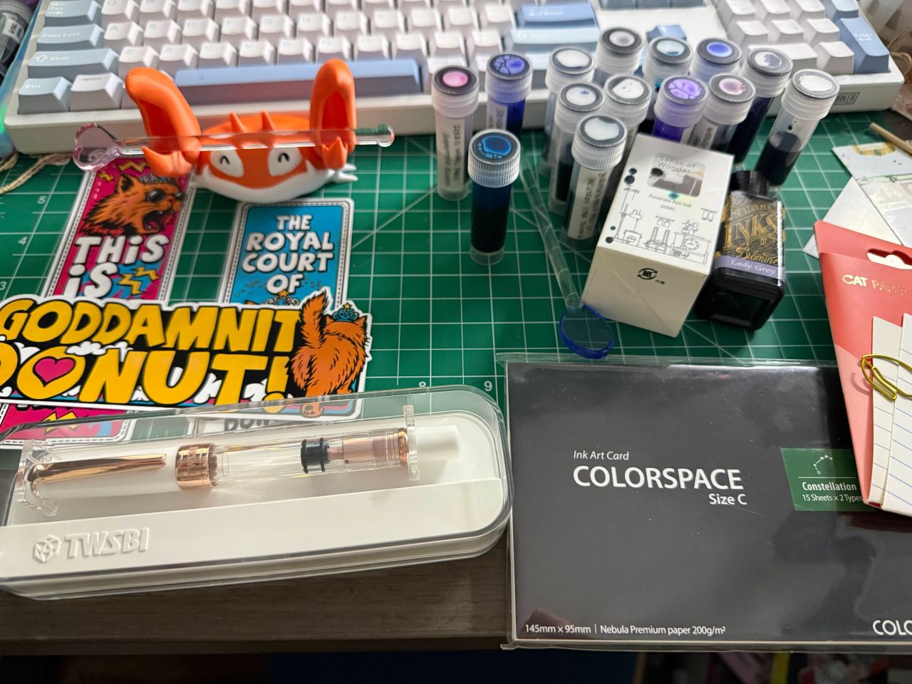 My Secret Santa absolutely understood the assignment. I love the Krabby pen holder, my first TWSBI Diamond full-size pen, and the DCC bookmarks, and the inks! I can't wait to use all of them.