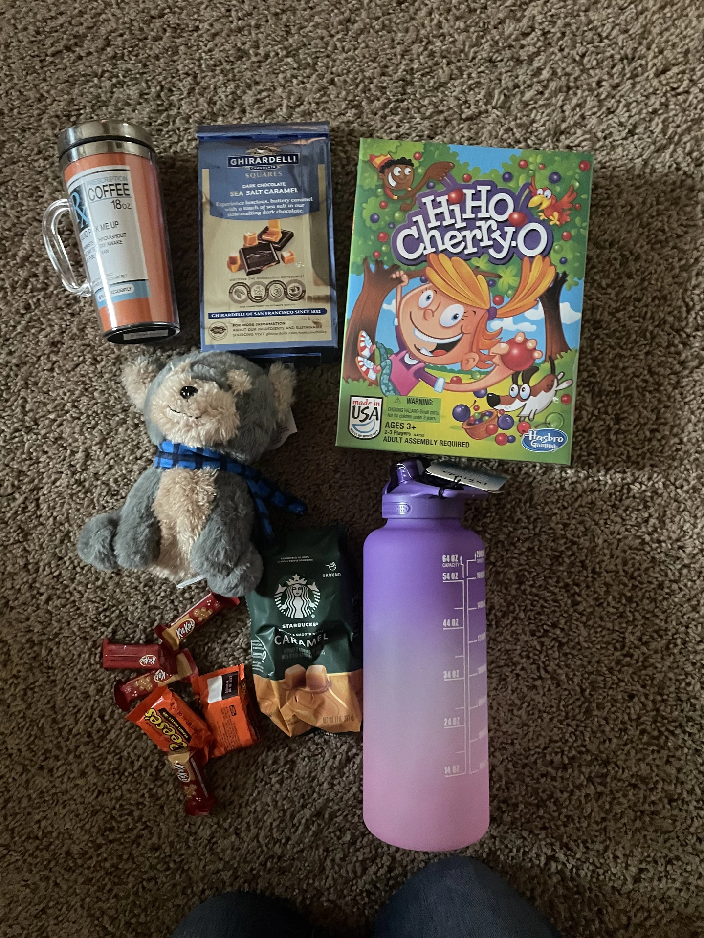 Thank you so much for my gifts Santa!! I can’t wait to play the game with my daughter, my brother and I would play when were younger. The coffee cup is hilarious! Love the water bottle to keep track of my water. The chocolates arrived just in time, I ran out today. And the coffee looks delicious!!!