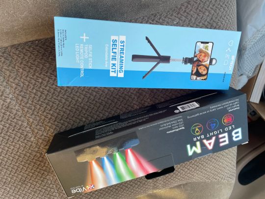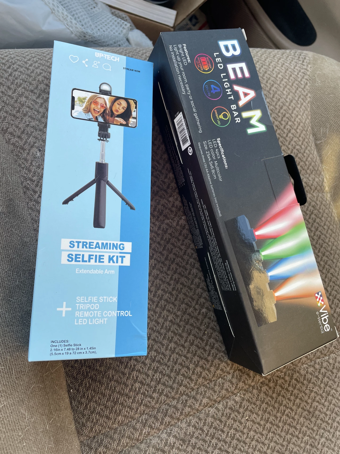 Received a light bar and selfie kit. The light bar will work nicely for a corner in my house and the selfie stick will be coming with me on my next vacation. Thank you!