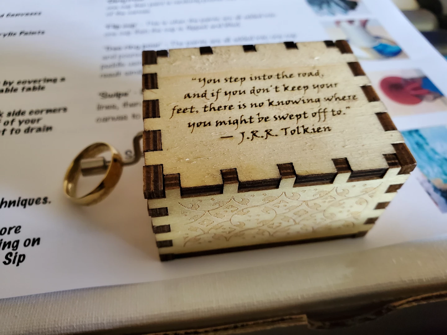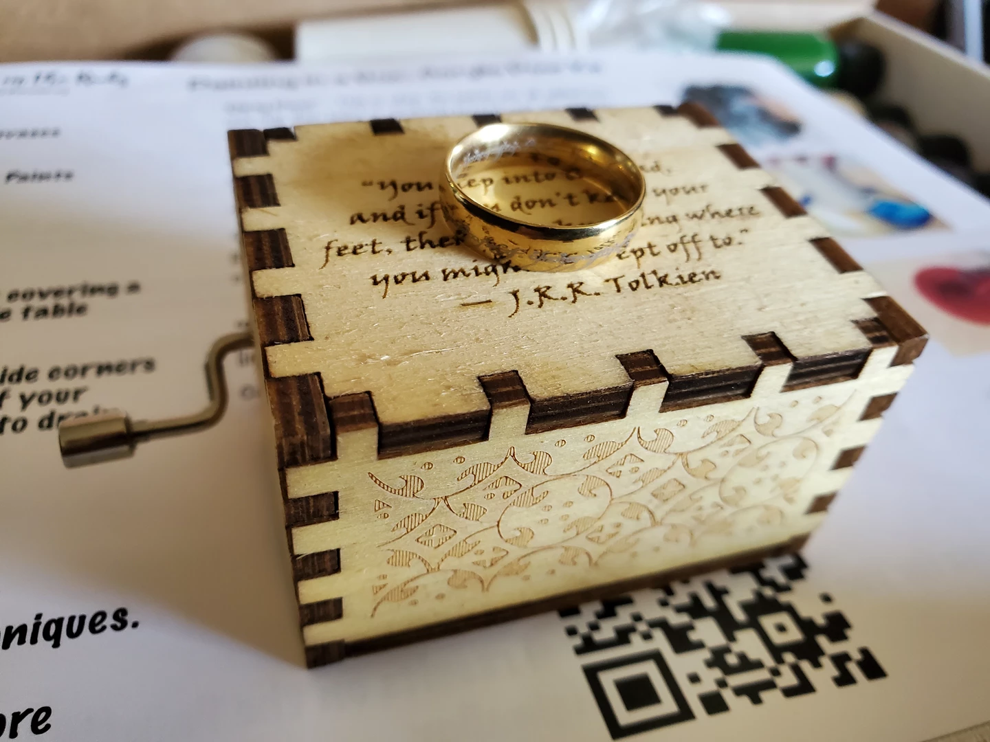 I had a very kind gifter this year indeed! I received this beautiful music box that plays "The Shire" from Lord of the Rings Fellowship of the Ring which made me tear up because I'm a big softee for all things Hobbit and it also came with the one ring!!! I also received an acrylic pour kit, which is something that I have yet to had a chance of experiencing. Needless to say I am VERY excited about the Givin' Gifts 2022 exchange. Thank you so much from the bottom of my heart maraseti! You rock!!!