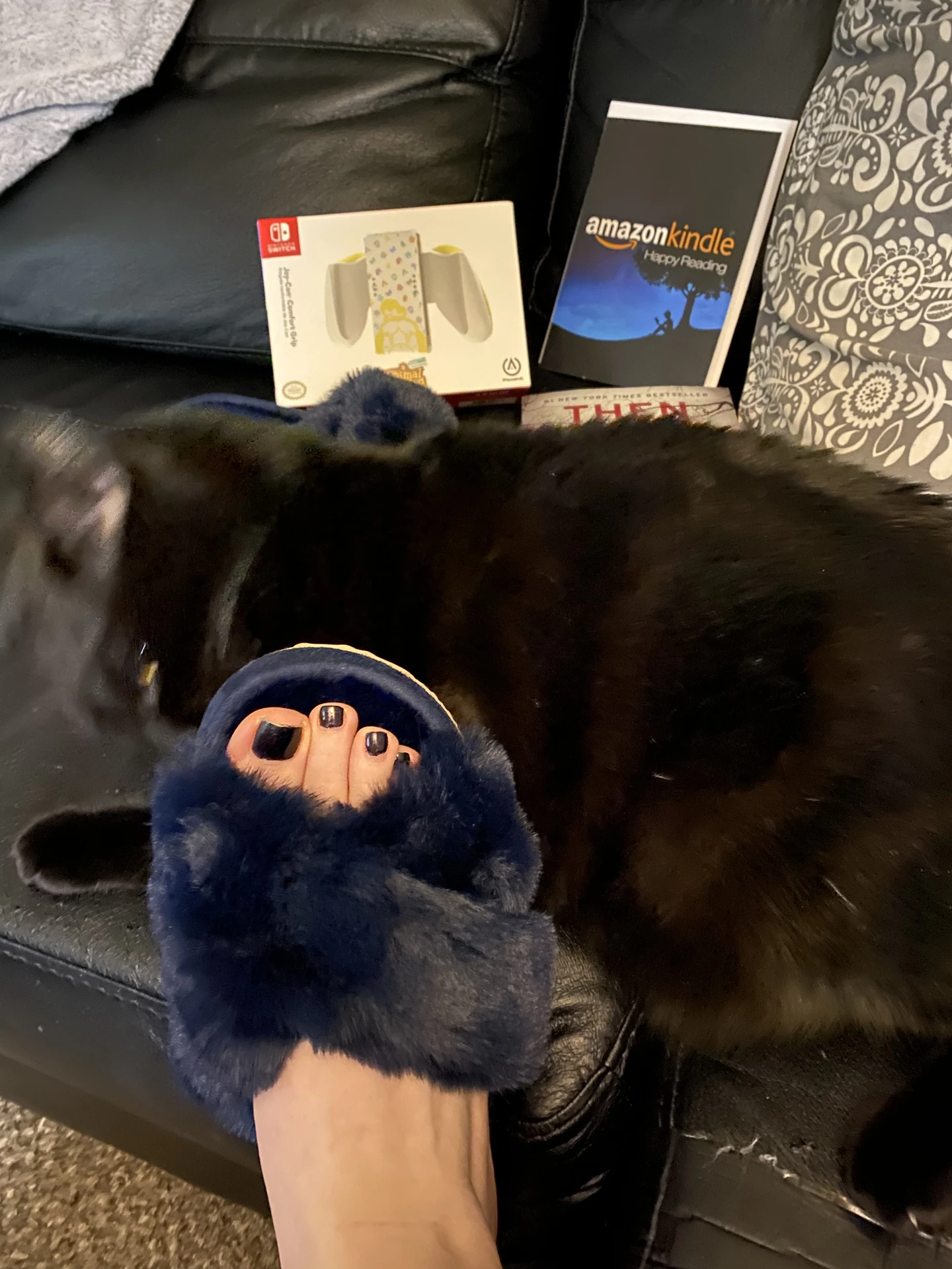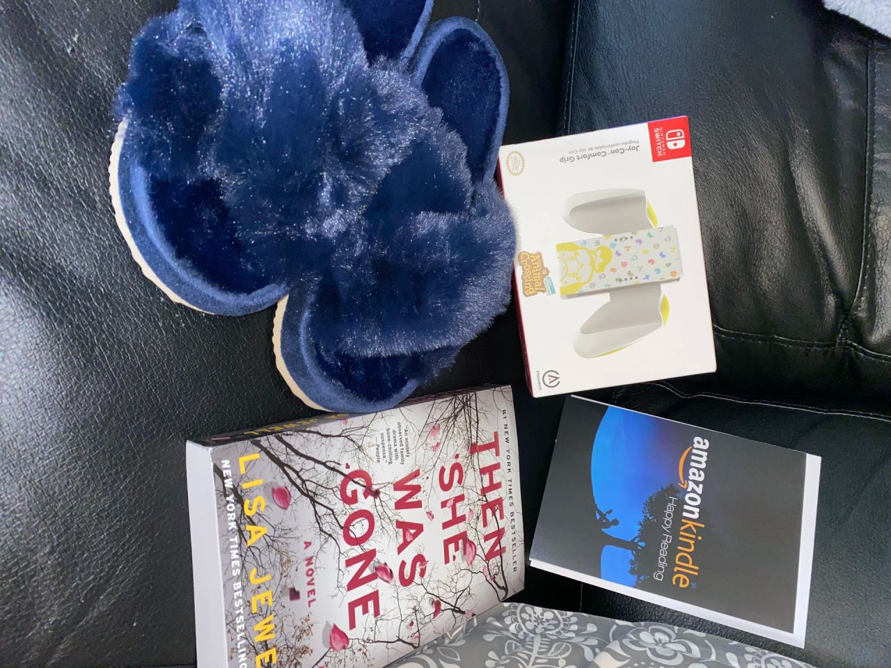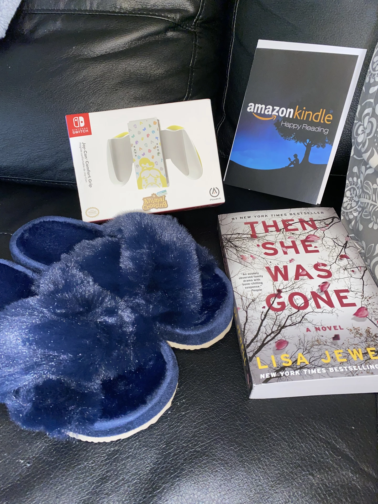 My gifter was amazing. Thoughtful and communicative the entire time and made this a joyous experience! I love books and collect books and also read/listen to a ton of ebooks/audiobooks. They sent me: “Then she was gone” by Lisa Jewel a suspense novel I had on my (TBR) to be read list, $10 kindle credits, beautiful dark blue indigo (literally my favorite color and I didn’t post this) fuzzy warm house slippers and an Animal Crossing Nintendo Switch controller!!!! I am overjoyed! I love all my gifts, thank you MelonPen!!