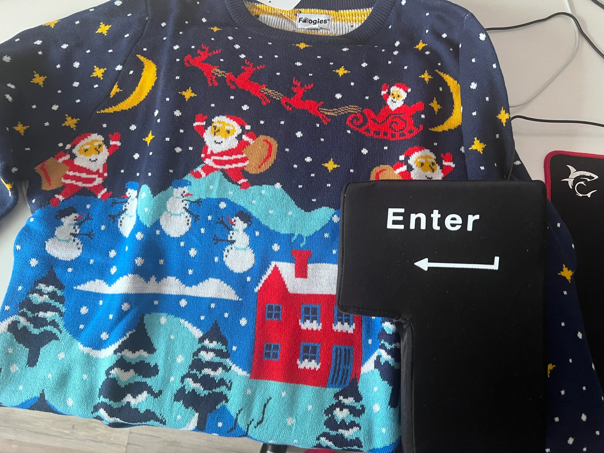 Thank you Santa for this great gift. Jumper will keep me warm and big enter button will lower my stress at work.