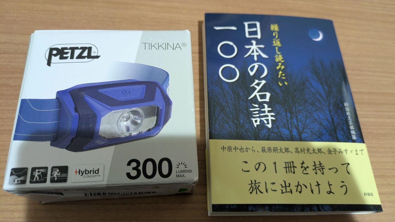 For work I'm in turbines and for my helmet I wanted a good petzl light. The light I had was too heavy but not it's super light. The book is of famous Japanese poems, and since I'm a poet it'll make a good read this winter. Thank-you!