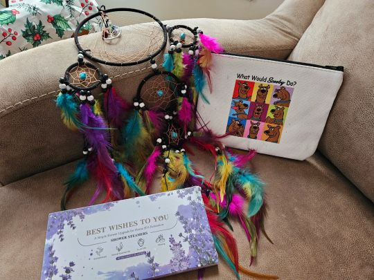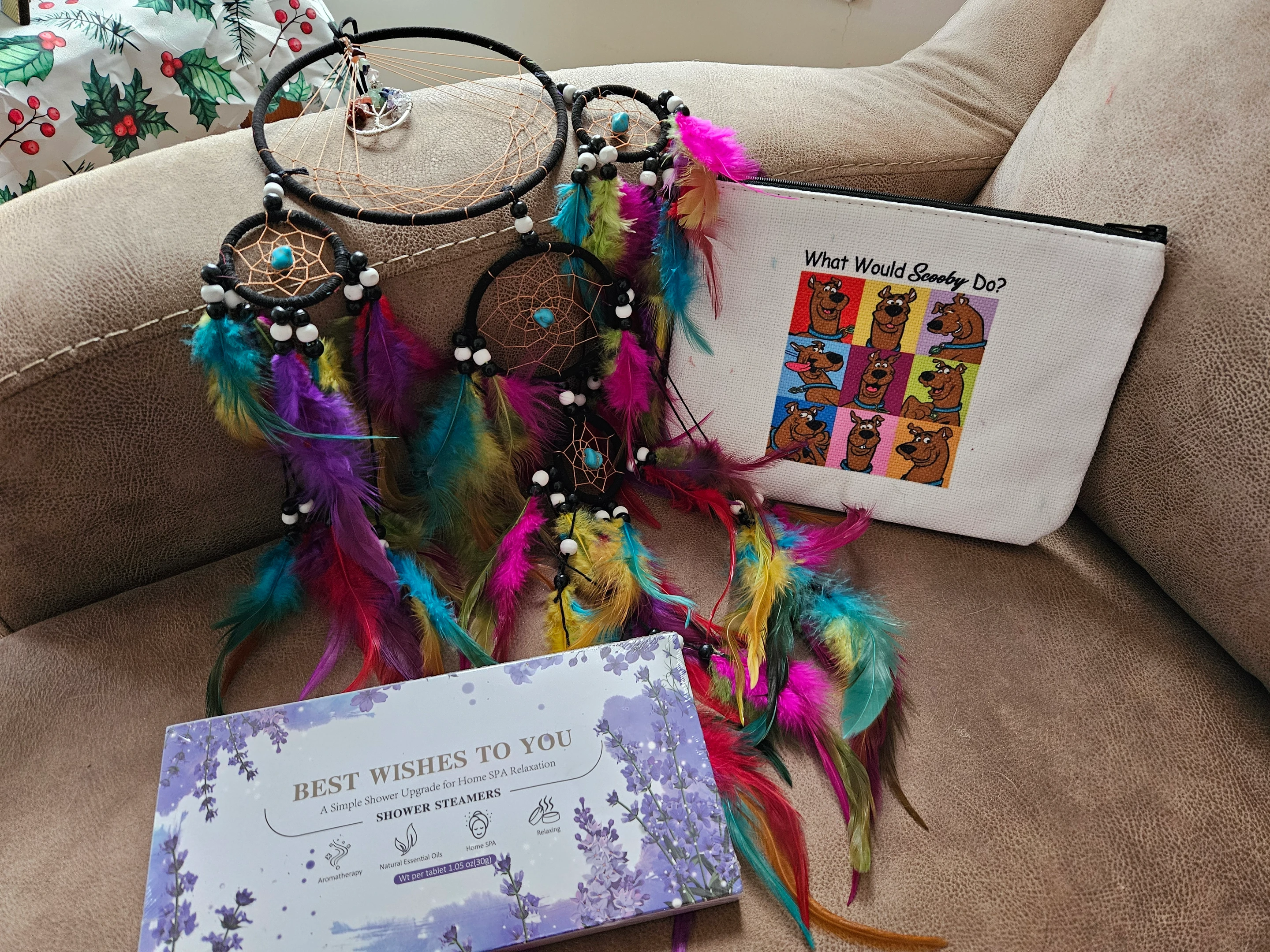 The beautiful colors in the the family tree dream catcher are incredible. The Scooby Doo case is hoing to be filled with candy and put into my vehicle for when my blood sugar drop and I've already used one of the shower steamers.