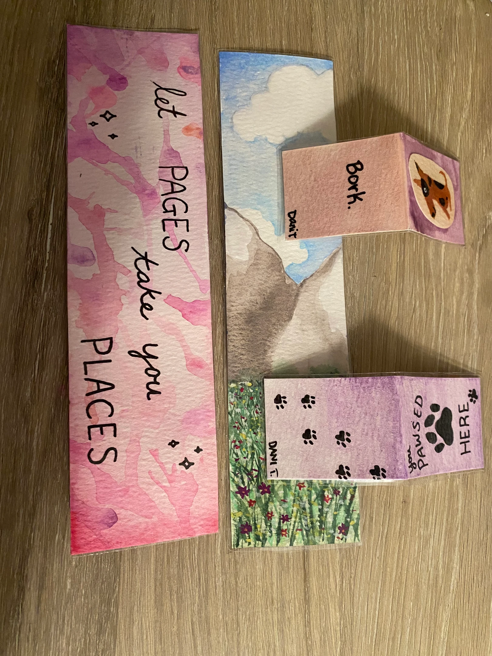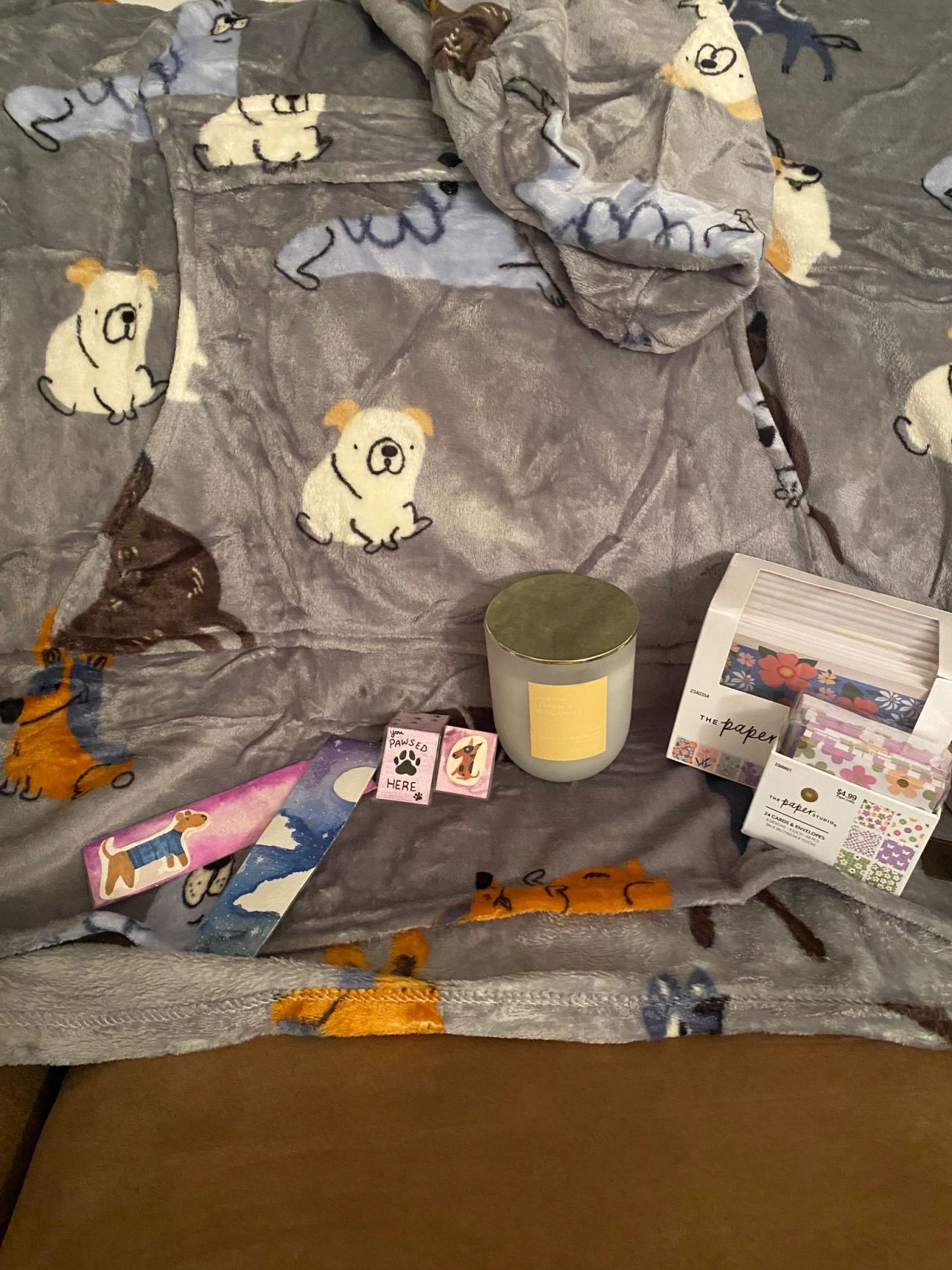 I did not include a pic of the rainbow box my gift came in but that immediately made me smile! The inclusion of dogs throughout was greatly appreciated! The bookmarks are so cool and gorgeous! Means so much more to me that they’re handmade! Also, my gifter nailed it on the candle scent! New favorite candle which is perfect timing because I just had to throw away my previous favorite candle as it was spent. Thank you so much! Brought lots of smiles to me.