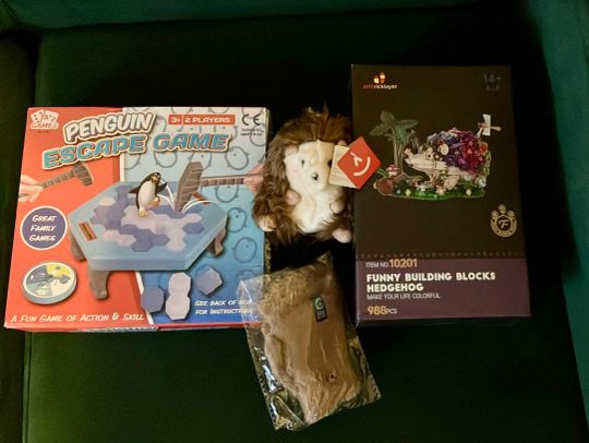 I've got amazing and thoughtful gift from my Secret Santa!!! Here are: board game with penguins, building blocks hedgehog, gloves and plush hedgehog. I am a huge fan of penguins and hedgehogs! And I can't describe how I'm happy now! Now my penguin has a plush girlfriend, we called he Aurora! :)