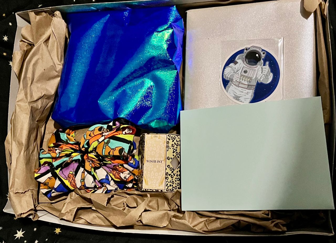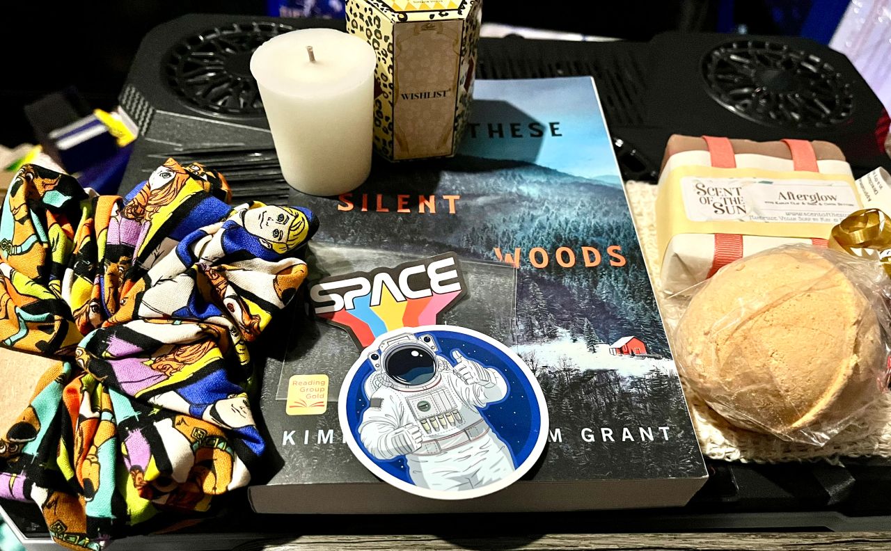 My gifter also picked out a book that was on my TBR; These Silent Woods, by Kimi Cunningham Grant. I'm excited to read it for sure. You can't go wrong with book gifts! One of my most favorite things ever. :D And, I got two space stickers as well, which I will definitely be finding something to stick them on.