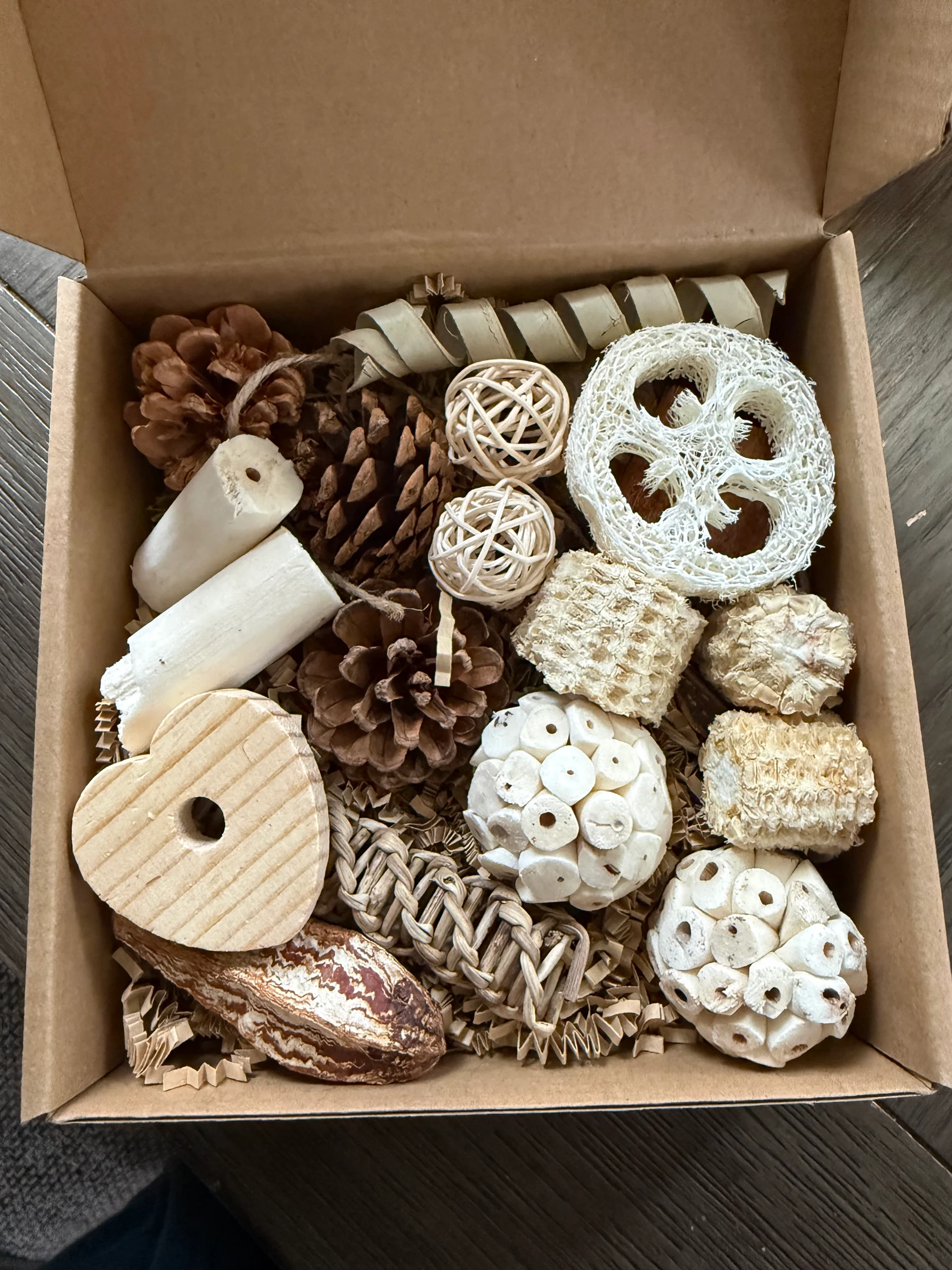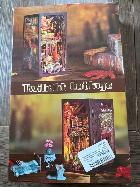 My gift was super thoughtful and included stuff for my furry and feathery family. I got a new Book Nook that is cottage themed, a box of bird toys, and a new toy for the kitty