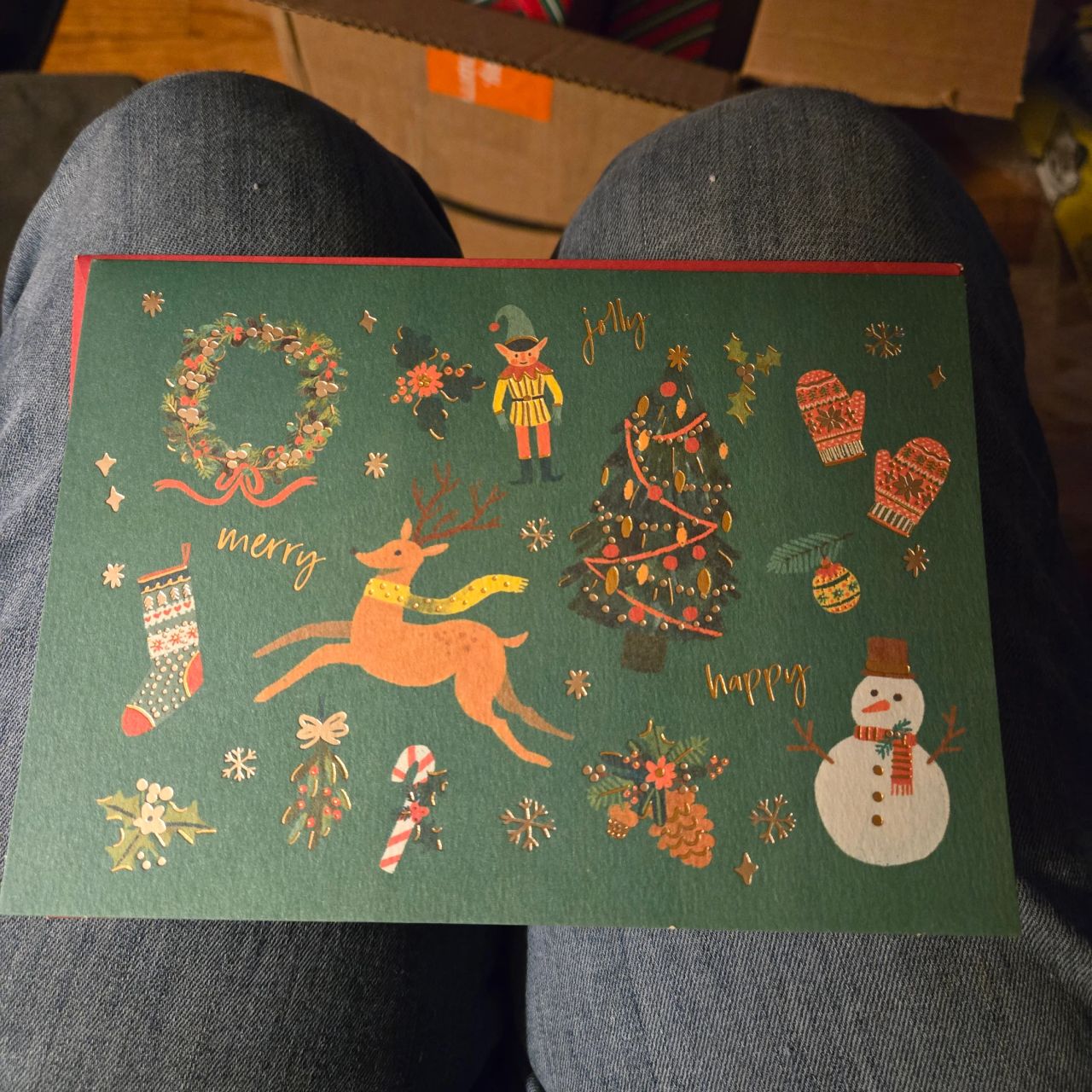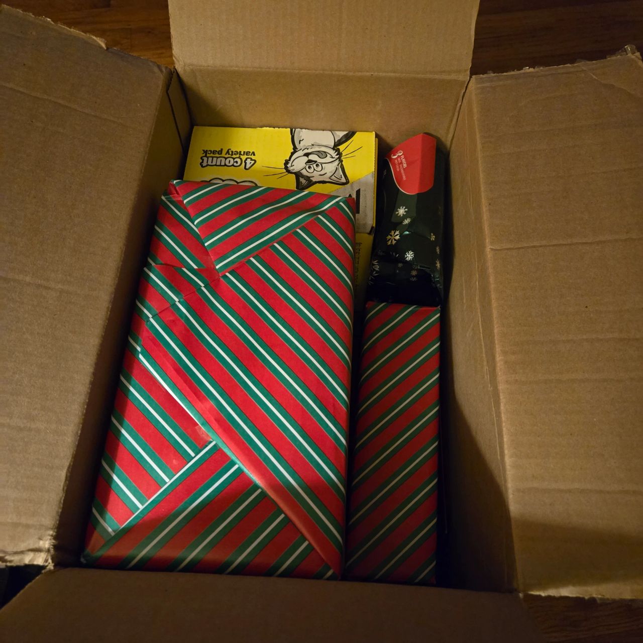 I don't know how to begin to say thank you to my very generous Santa! So many goodies in a packed box! The card was so pretty, and the stamps were a total surprise and treat! The stamps, along with the pretty flower cards and happy mail stickers, will definitely help with my obsessive hobby of sending happy mail to others. The big ol' bag of chocolates...oh my goodness! I love chocolate, and I have not had this specific mix before. I am excited to see and try all the different flavors. I do love that brand so they should all be yummy! I may be forced to share with the hubby a little since he is a bigger chocoholic than I am! The cats of course meowed with joy to see something in the box for them! They have already broken into one of the treat bags and definitely approve! The Brita water pitcher is also much appreciated. It will definitely come in handy when we officially move to the new house at the beginning of January. Thank you SOOOO much Santa for all the goodies. 100 out of 10! Happy Holidays to you! 🥰