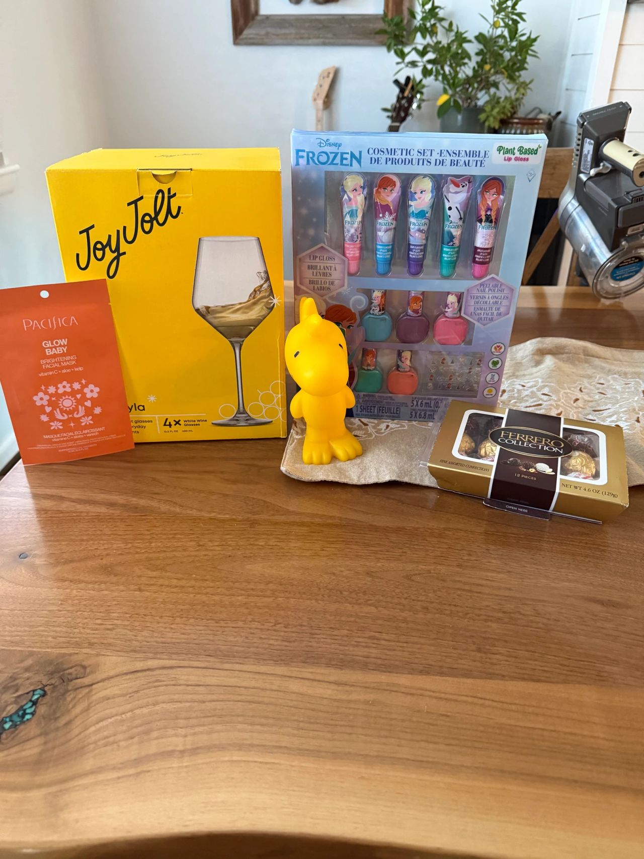 Loved everything my gifter gave me. My daughter was over the moon about her frozen gift. The glasses were perfect for thanksgiving. And I loved using the face mask to relax after all the time and effort spent making a big meal.