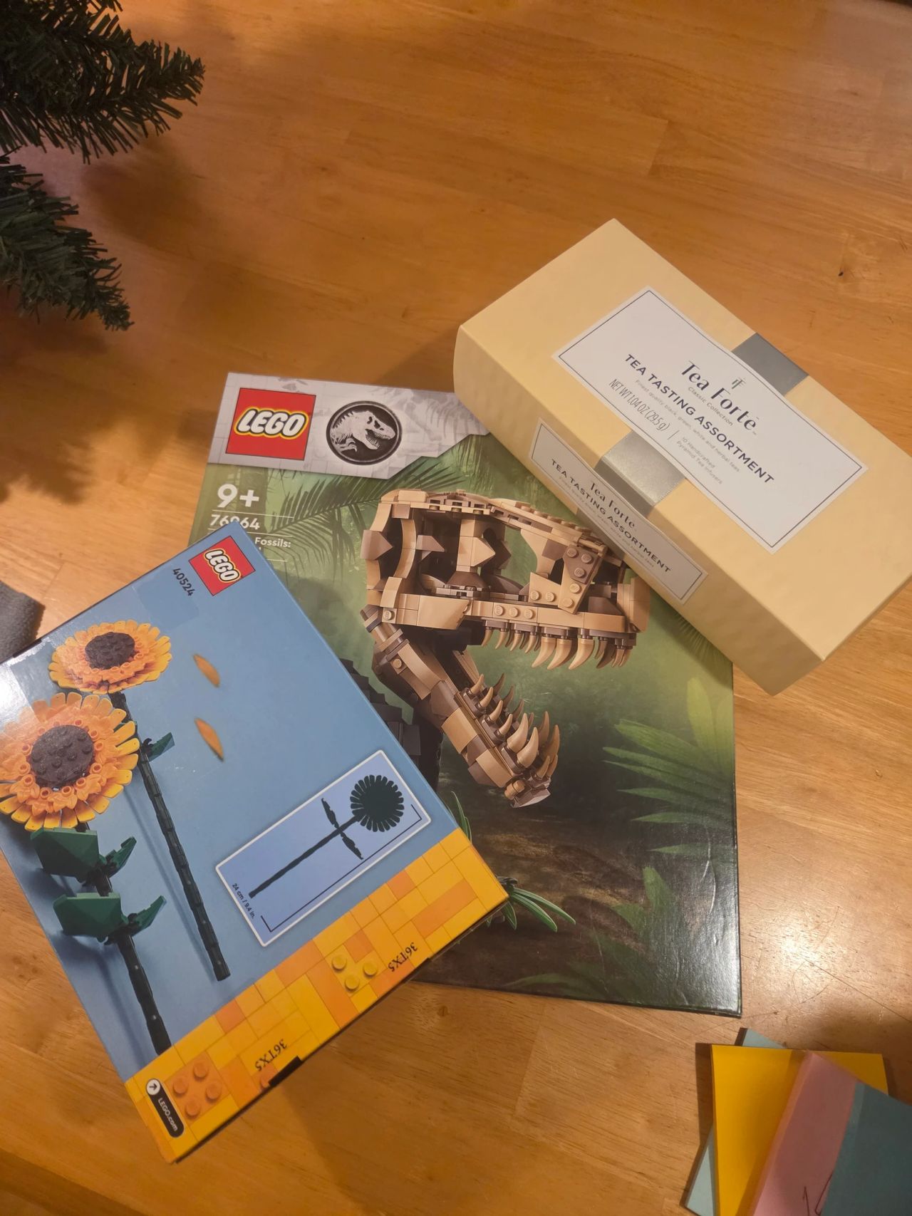 Thank you SO much secret Santa!! Legos, dinosaurs, sunflowers, tea...you friggin nailed it! Thank you SO much!!