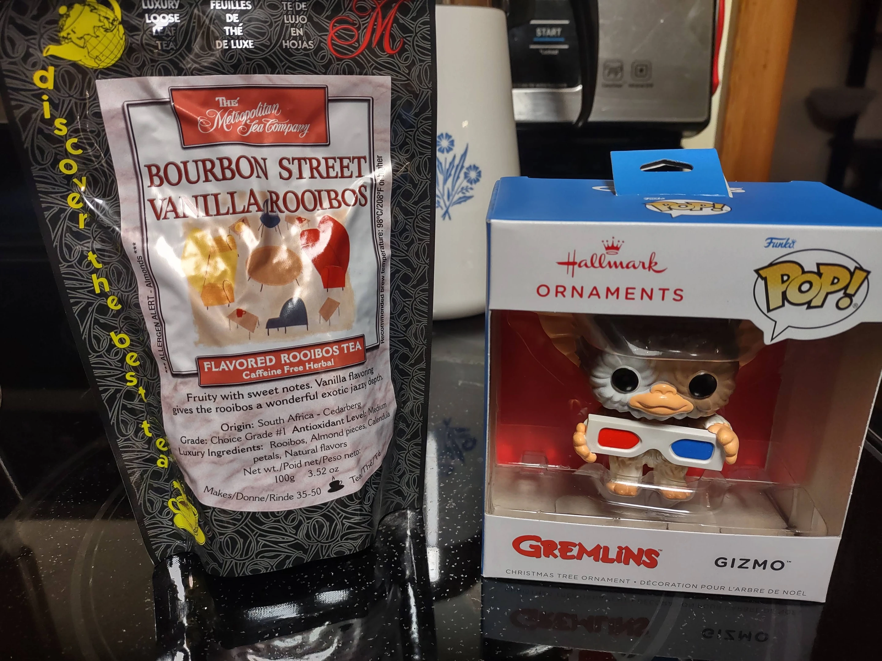 I can't wait to try this tea, it sounds so good and I love Rooibos. Gizmo is so cute and will look great on my tree (its not up yet, if I remember, I'll add another pic.