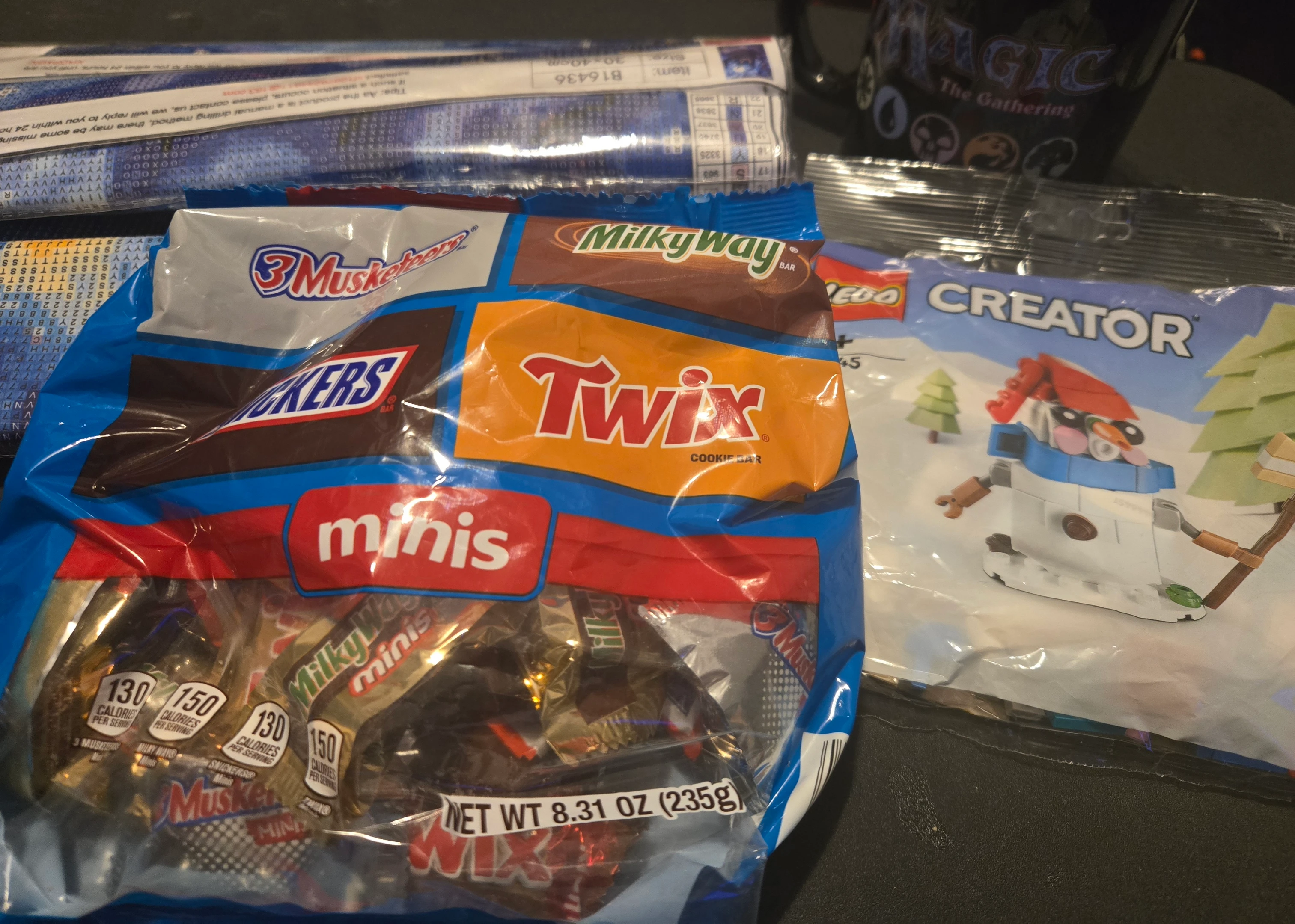 I just wanted to say thank you for your thoughtful gifts. I love the pokemon diamond dots. I love doing diamond dots to help me de stress so these will help immensely. Also love the legos and you picked my favorite chocolates!! The mug will be used everytime I play commander with my friends on thursdays!! Thank you again for everything I hope you have a wonderful christmas!!!