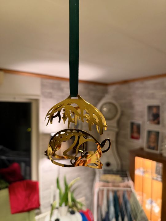 A fantastic and special gift, I have hung it in the middle of our library, it gleams very nice there. Huge thanks santa for something I will keep for many years!
