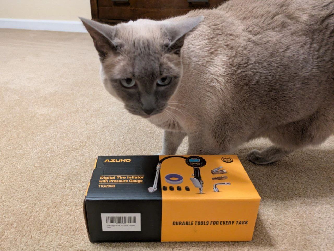 My last tire inflator met an untimely end when it failed to securely latch onto any valve stem. Rest it's soul. Nala is uncertain about this one but I assured her this one will be better!