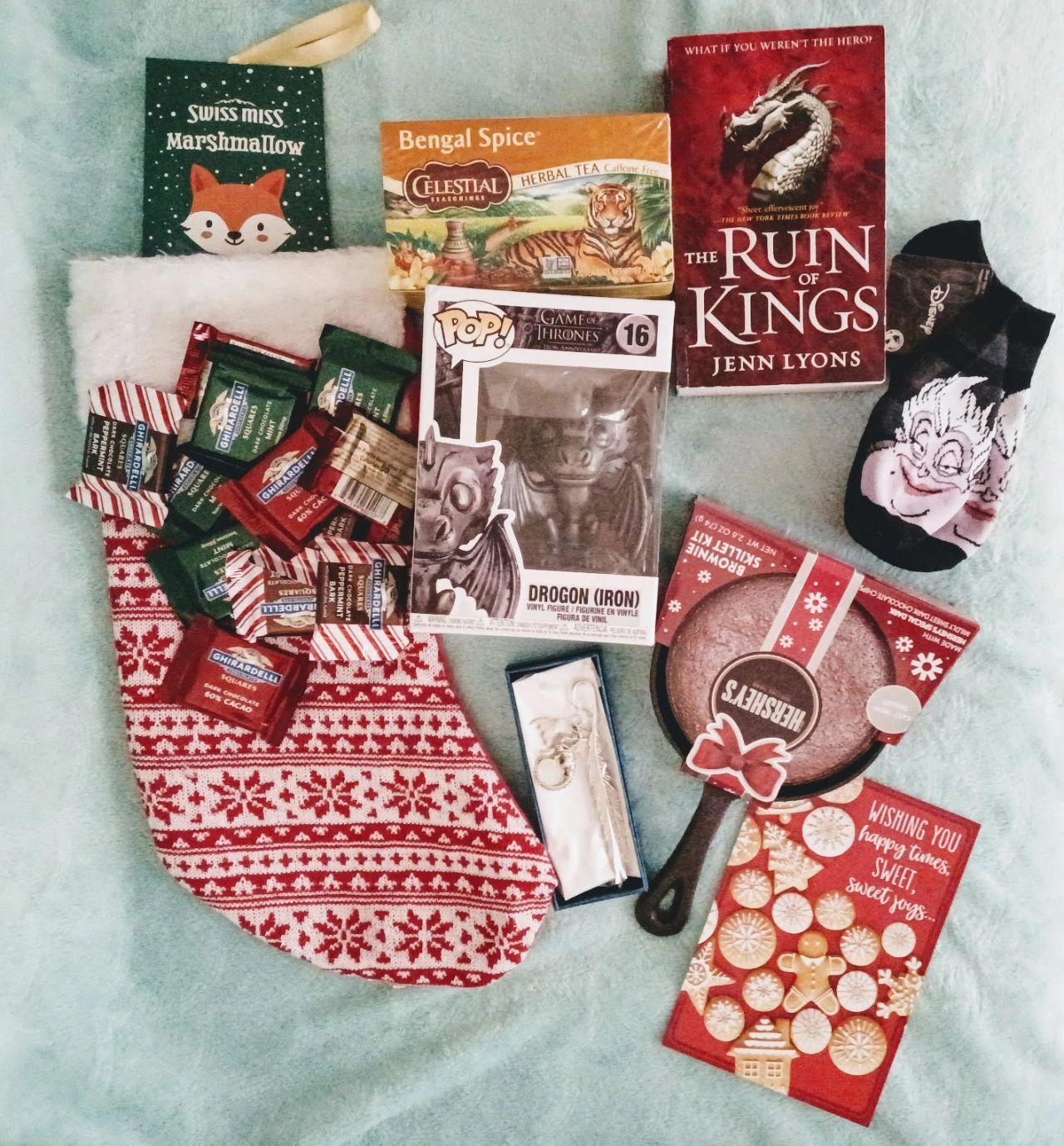 Wow! Thank you Holiday Santa for the wonderful gifts. I'm already snacking on some of the assorted dark chocolates and looking forward to making some hot chocolate and a skillet brownie some...yum!