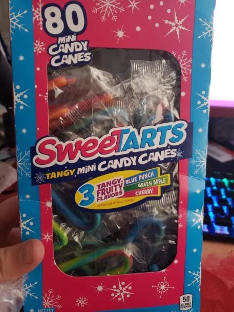 i got a ton of sweet tart canes which are one of my favorite treats. gonna have fun rotting my teeth with them while i wait for xmas