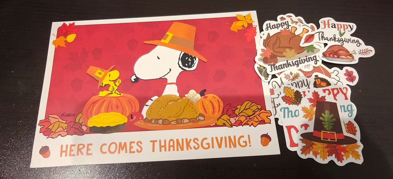 Thank you so much for the card and the cutest thanksgiving stickers! I thought I had all the holidays covered but I never realized I didn't have any thanksgiving ones.