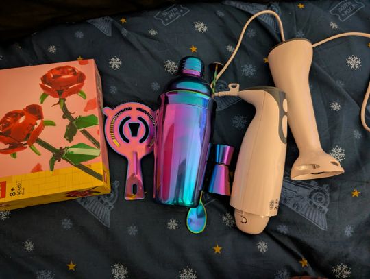 My gifter was so sweet and got me some amazing gifts! The hand blender will be perfect for soup season, the mixing set will be great for New Year's cocktails and I'm looking forward to doing the Lego set. Thank you!!