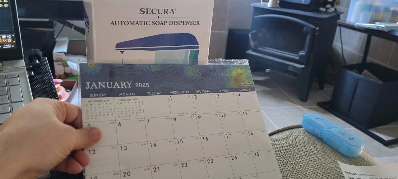 Soap Dispenser is just going to make things so much easier. It is frustrating to go and try to wash my hands after cutting up certain food. :D Will be getting this in place today. The calendar is perfect :D I am addicted to fridge calendars because you go by them all the time; so its the perfect place to have a what's coming up calendar there. Thank you so much Santa!