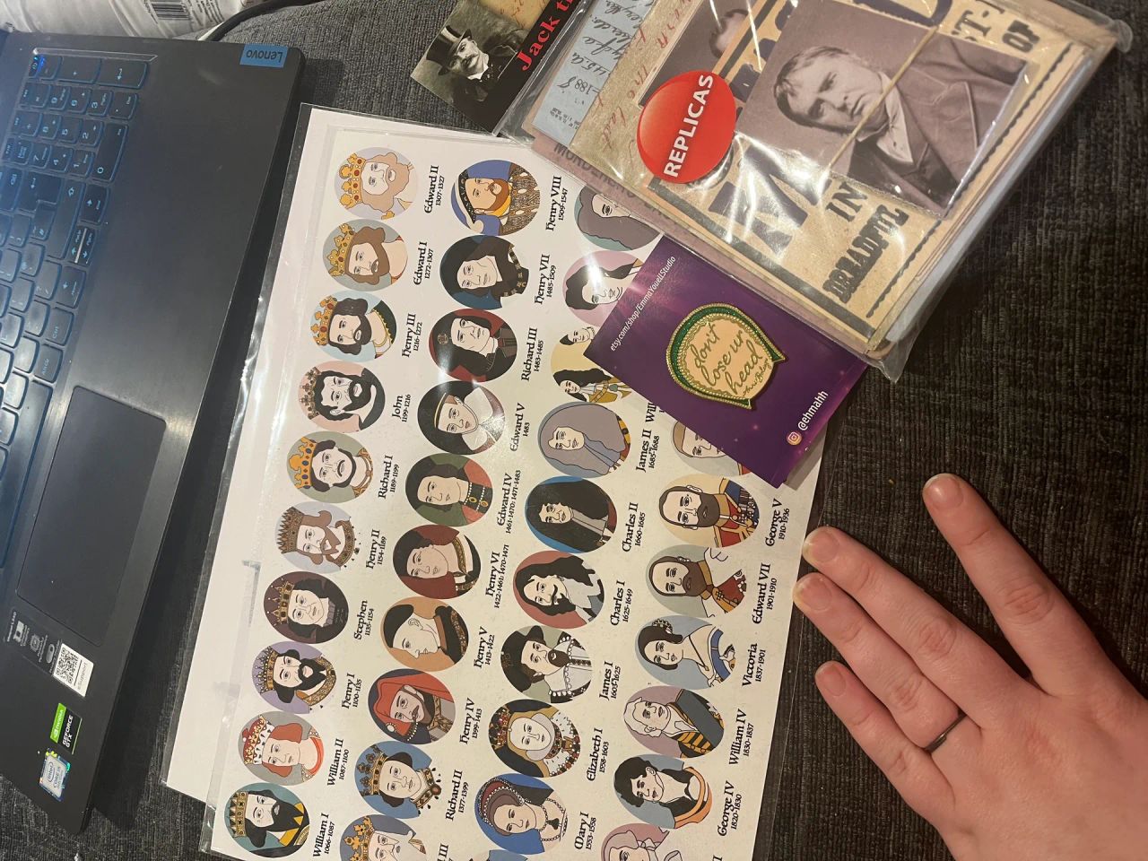 Love these, a print of the monarchs of England, Jack the Ripper replicas and an Ann Boleyn pin which is my favourite pin ever and has been propped up on display waiting for me to sort out my pinboard!