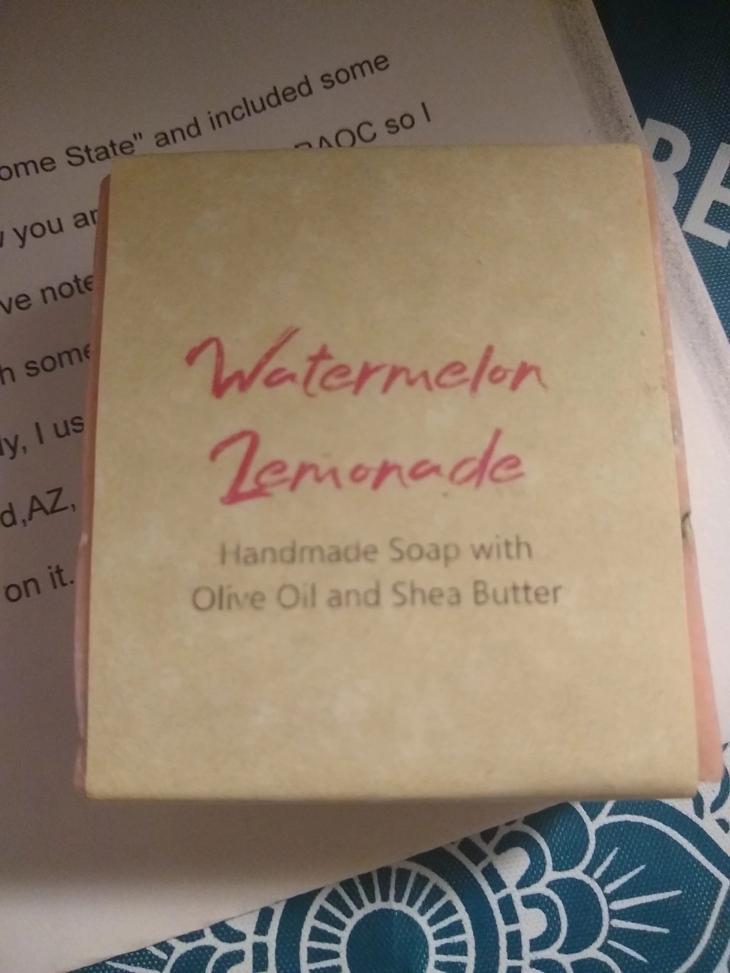 I asked my gifter to share the activities/events/places they enjoy in their hometown and they did exactly that! From amazing postcards, to a plethora of notepaper (which I too appreciate), to stickers, guitar pik, lanyard, cup, key chain, foldable fan, gorgeous drawstring backpack, a beautiful memorial ornament, and the most amazing smelling handmade Watermelon Lemonade bar soap! Plus an informative note to tell me about everything! Thank you!
