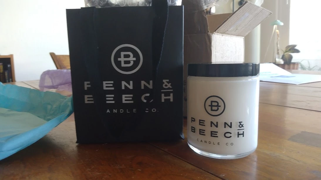 In the package they revealed that they were, in fact, my penpal match from a previous exchange! I loved the use of sticky notes to hide "spoilers." I actually laughed out loud when I opened the card. The gift included a bottle of Old Spice (from their other hometown!), a gift card to Jenni's ice cream (Los Angeles is MY hometown!), and a hand-poured candle crafted to my own personal taste in smells: tobacco, leather, and shaving cream. Absolutely STELLAR.