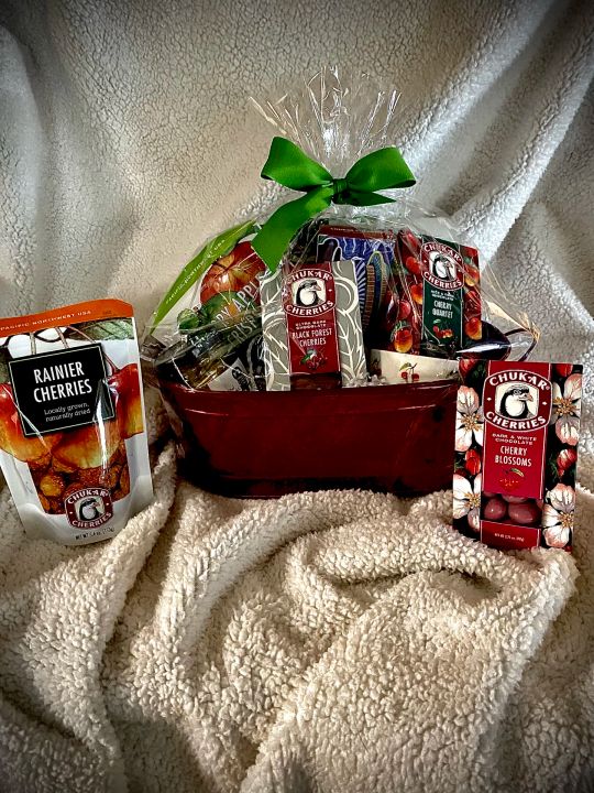 Be still my drooling heart…it's Cherries! I'm so happy to share this gorgeous gift-basket with you today. It's full of delightful cherry gifts from Chukar Cherries in Washington State. A big Thank You to my Gifter for your thoughtful and generous gift. I haven't decided what I'll eat first, but I wanted you to know how happy and grateful I am.”.