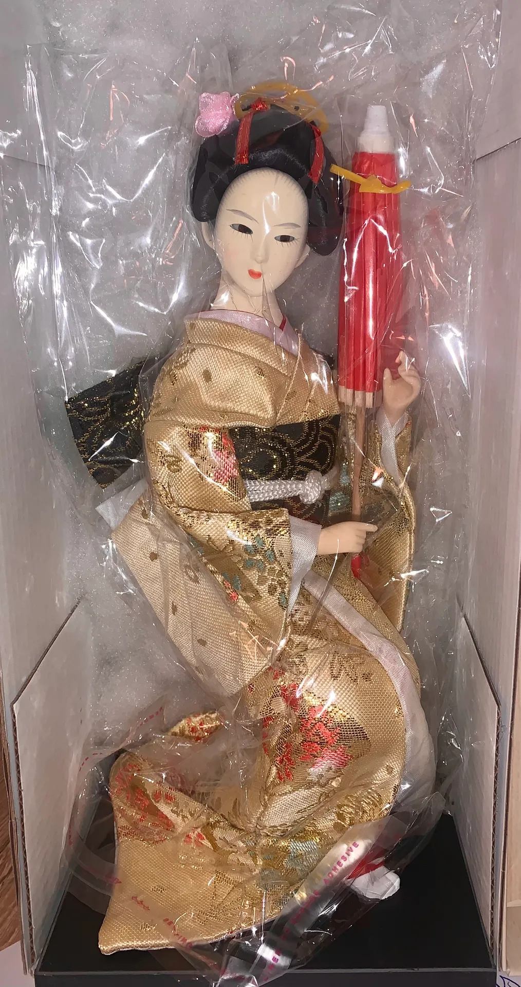 She is the start of my collection. Thank you for the wonderful gift. Sorry I don’t want to take the plastic off until I get a case. I have always liked the Geisha Dolls. It is beautiful just as a real Geisha.