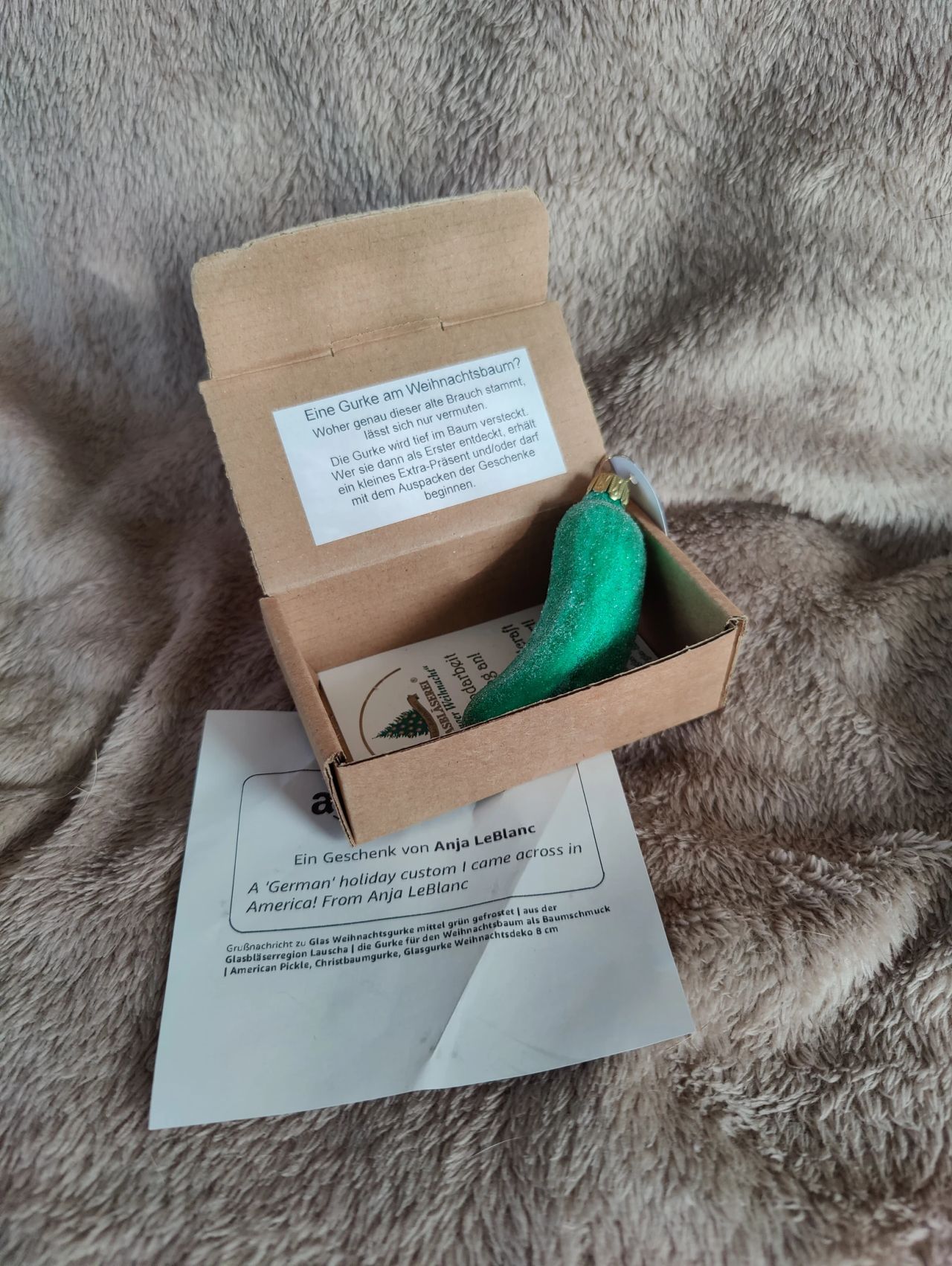 Thank you for the Christmas pickle. I didn’t know this was a German tradition at all, but I have heard of the American custom where the pickle is hidden in the tree. Thanks for the surprise and happy holidays. :)