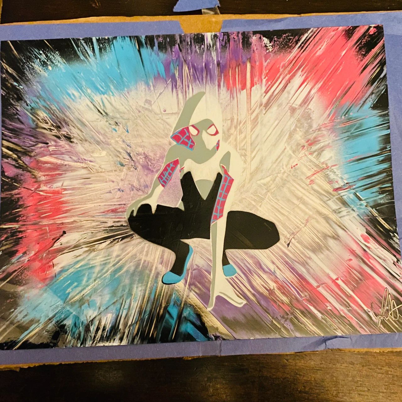 This spray painted Gwen Stacy is so beautiful!!! I love it so much ????? can’t believe there’s talented people out there that can free handedly spray paint anything, in love!! ❤️❤️