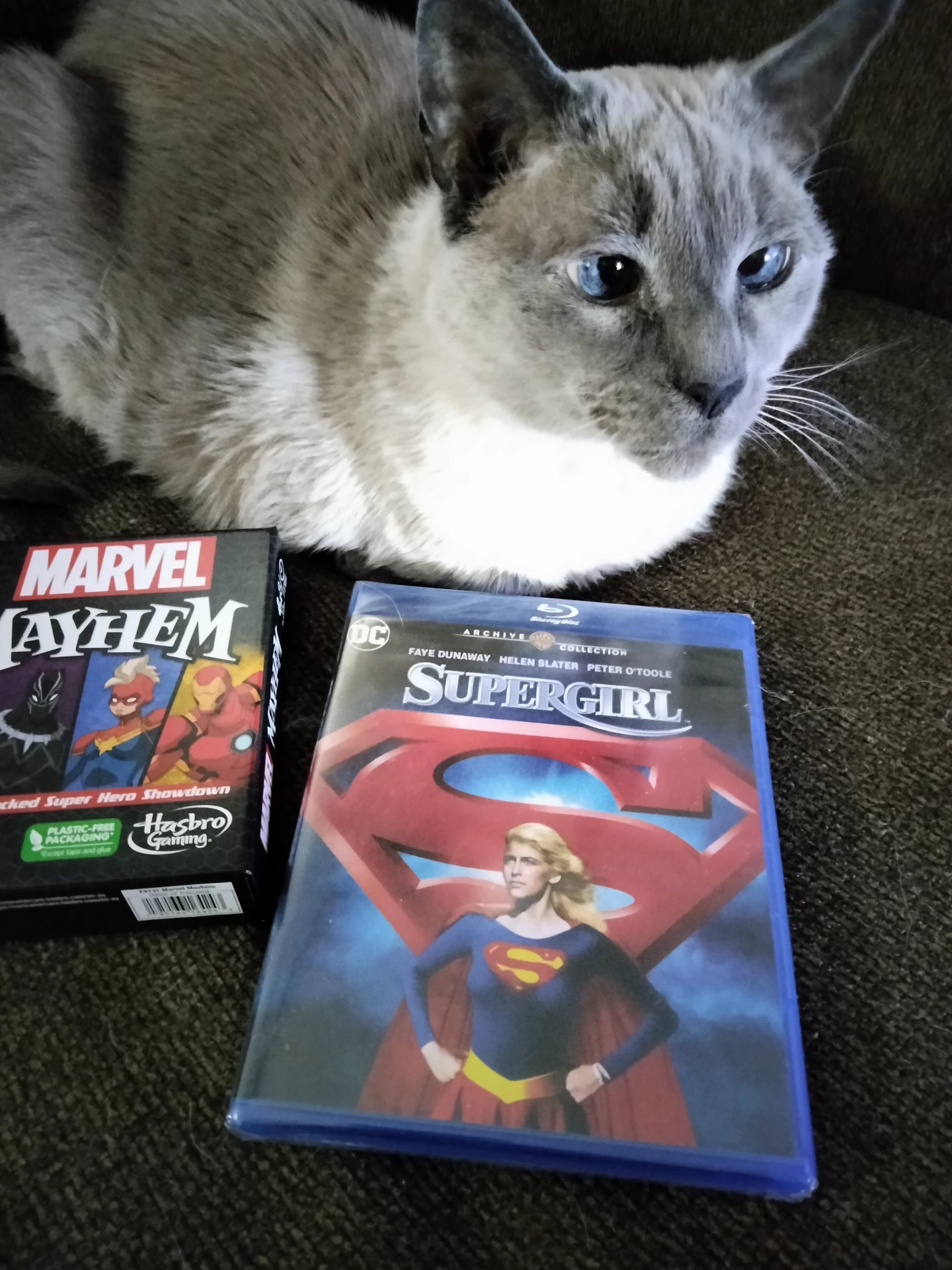 My too cool for words giver got me two items from my list! They got me the Supergirl movie on Blu Ray, something I've always wanted for my collection of Supergirl goods and the cardgame Marvel Mayhem, which I look forward to playing at my earliest opportunity.