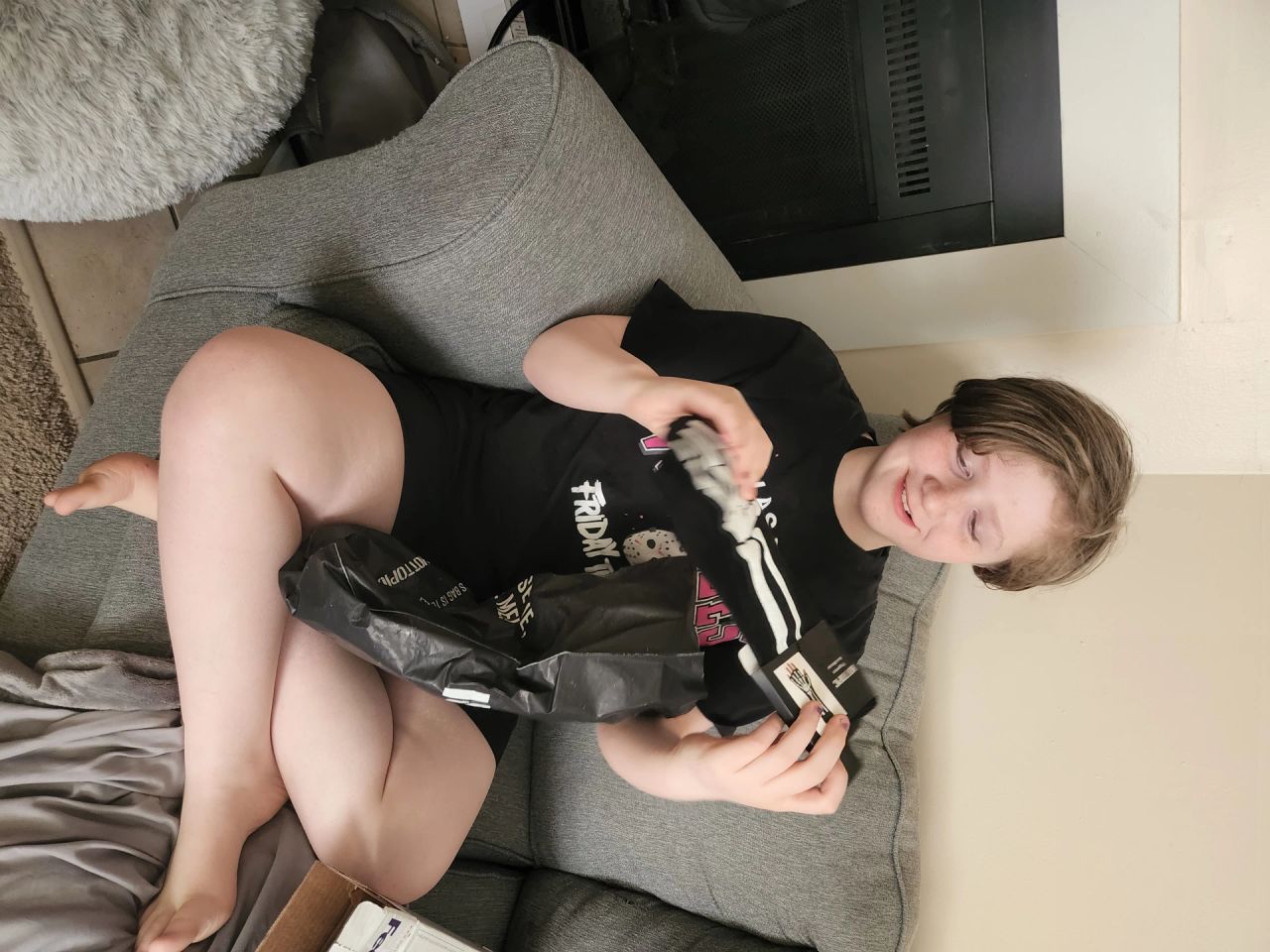 Thank you so much for the new clothes for Ailey. She absolutely loves everything and has been wearing them to school. The gloves were a huge!!! hit and her favorite shirt is the smoke kitties. but she loves everything!!! thank you so much Santa!