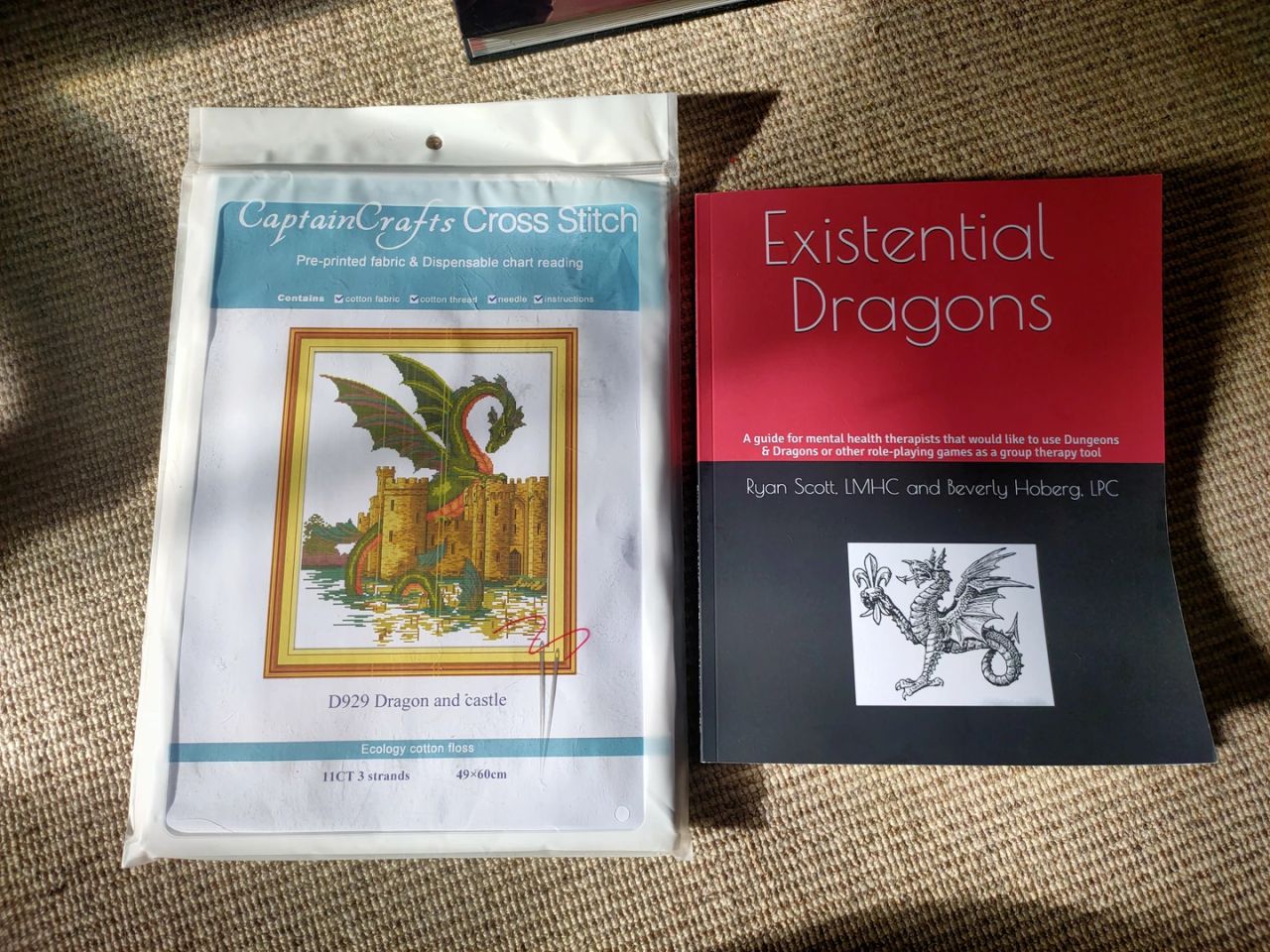 This gift is absolutely amazing. I've never heard of therapists using D&D to help, but it's a really fascinating book and my housemate who works in this area is eating it up. I also got an amazing cross stitch kit. If you're looking for a low-stress hobby, I highly recommend! \n Big thanks to my Santa for finding these.