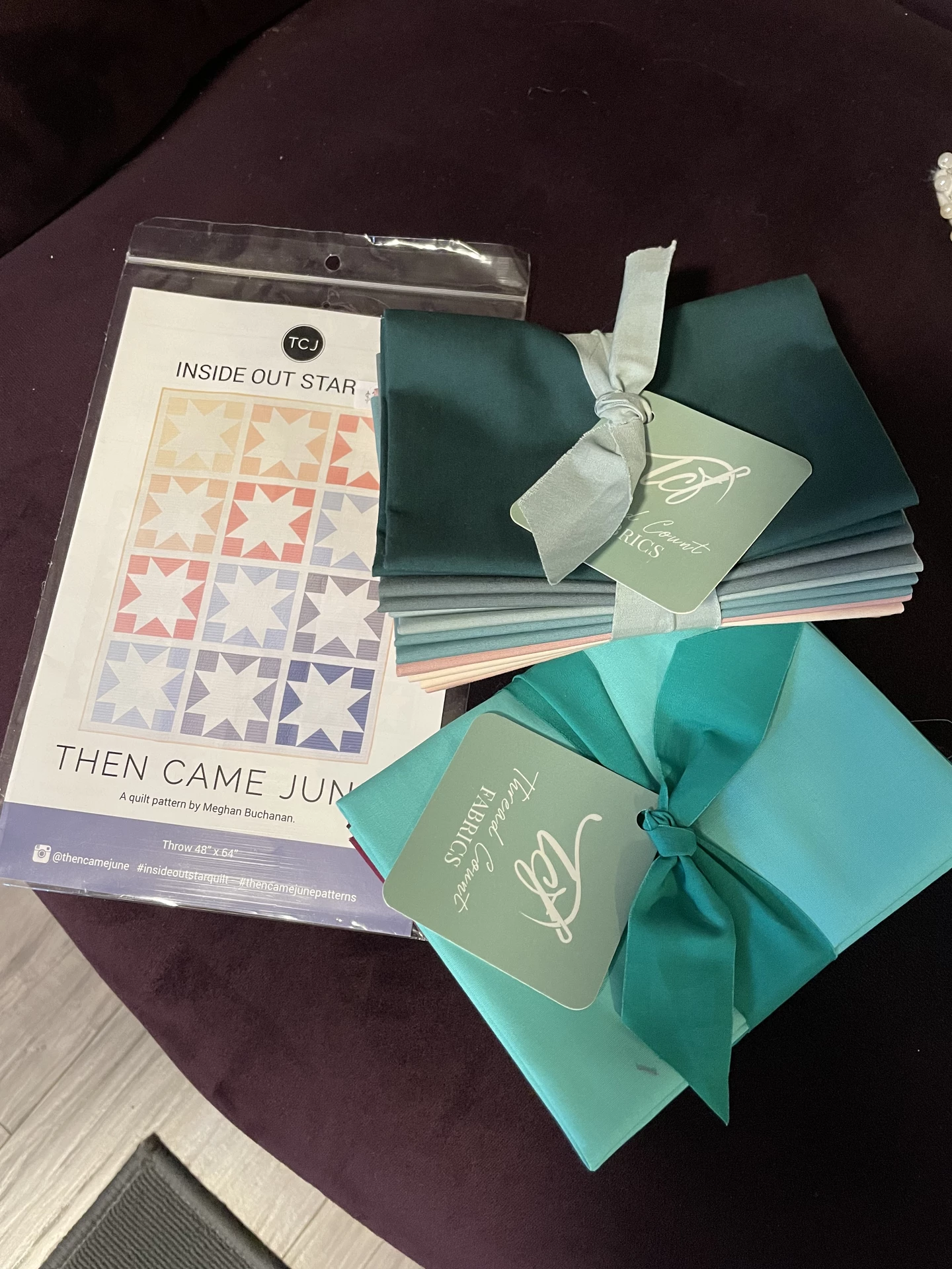 My Santa gifted me with this beautiful pattern and materials to get my started on my wish to make a quilt this year. All my favourite colours… thanks so much!!!