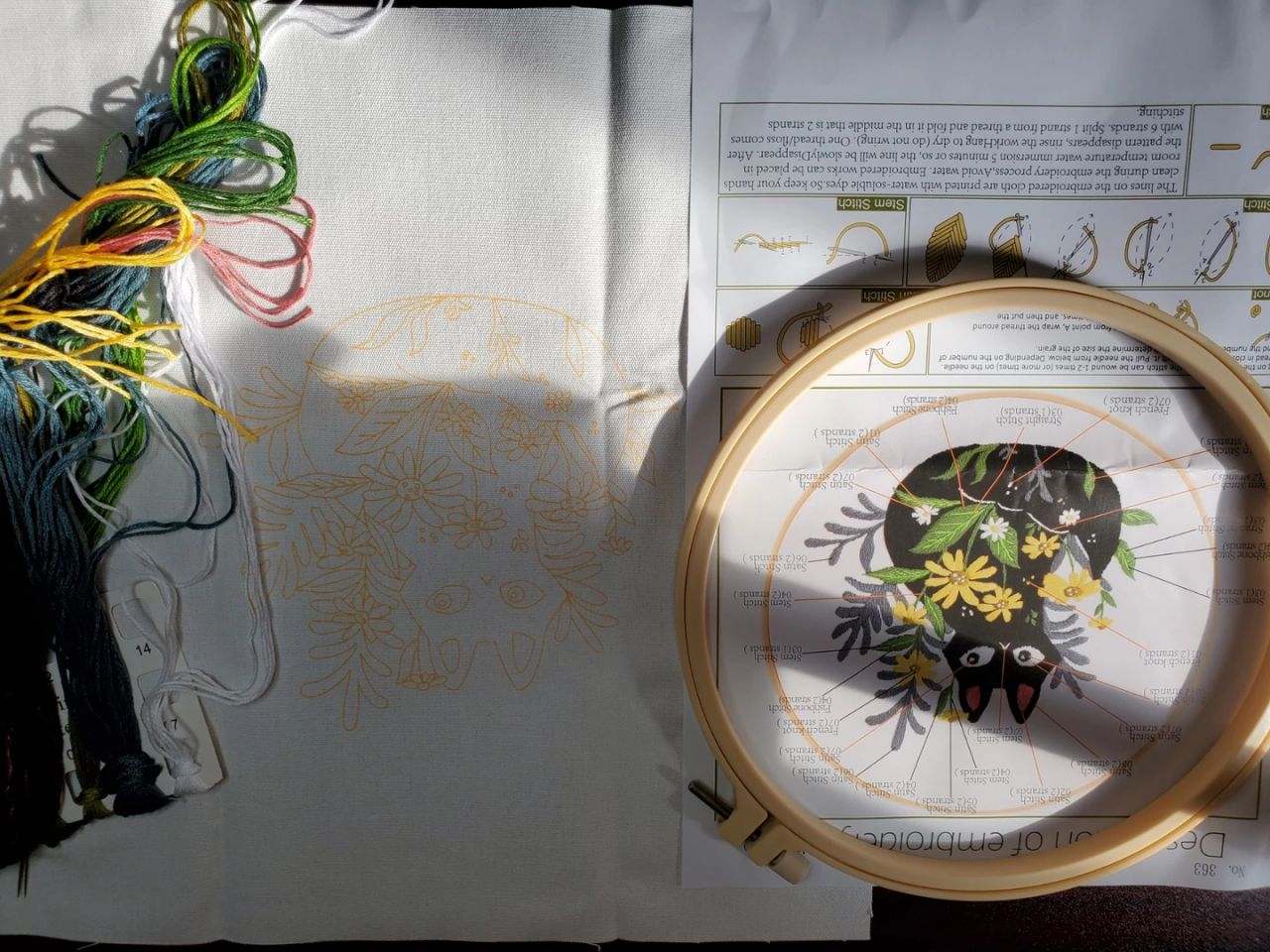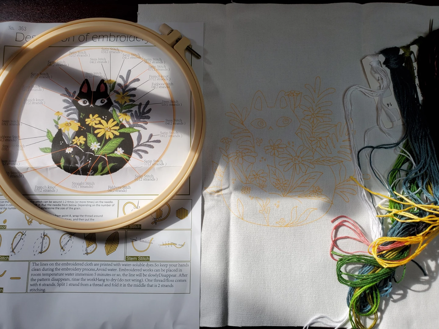 I got some lovely cross stitch kits featuring plants and cats I actually didn't notice the cat on the second one at first. I have started on the one with the small cat already and it's fun and a good stress reliever.